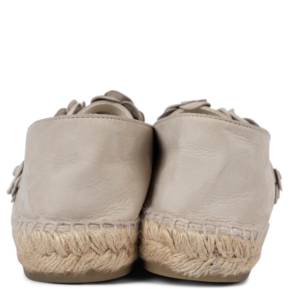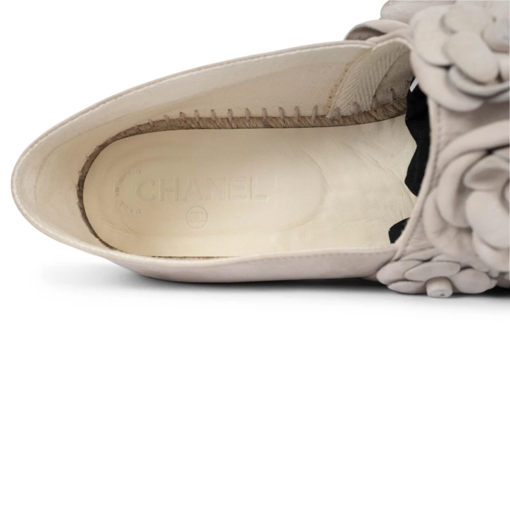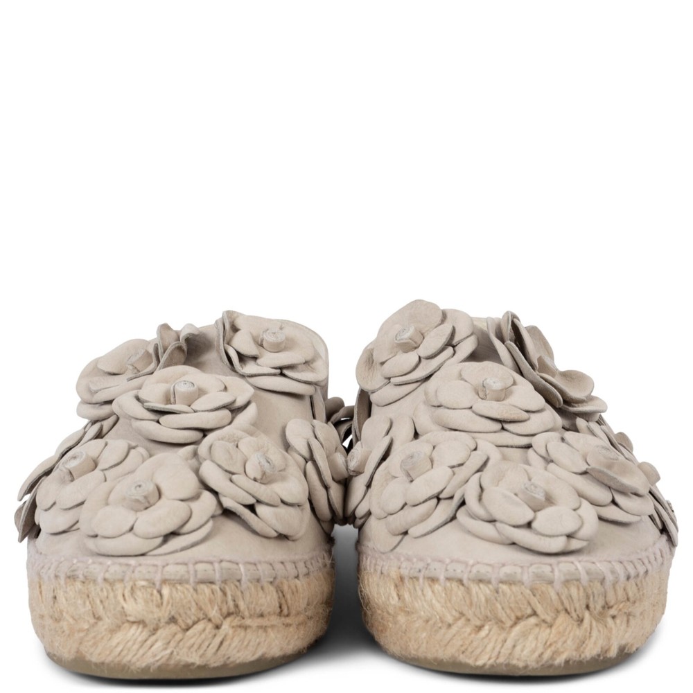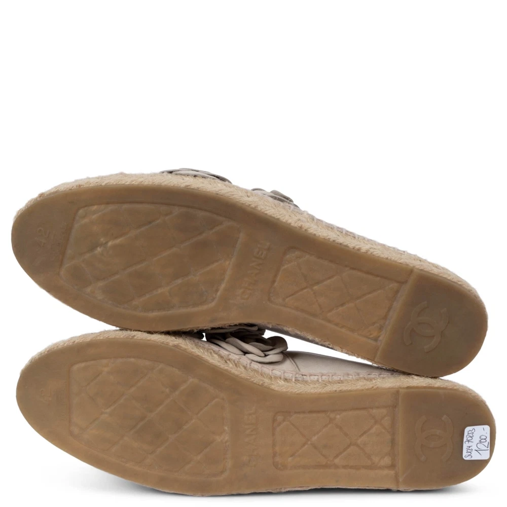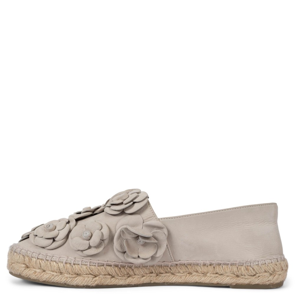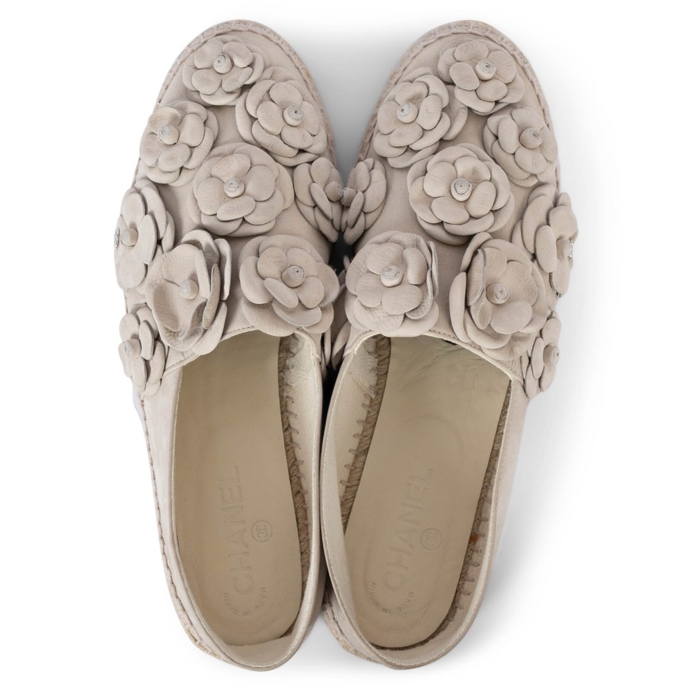 Welcome to LUX l Authentic Designer Consignment Rämistrasse 25, 8001 Zürich, Switzerland I Tue-Fri 11-18:30 & Sat 11-16:00 By bidding on our auctions you are agreeing to our Terms and Conditions below. All items come with authenticity guarantee! ------------------------------------------------------------------------------------------------------------------------------------------ Product Description: 100% authentic Chanel 2017 Cuba espadrilles in taupe nubuck leather embellished with tonal Camellia blossoms. Lined in ecru leather. Have been worn once and are in virtually new condition. Measurements Model Chanel17C G29904 Imprinted Size 42 Shoe Size 41 Inside Sole 27cm (10.5in) Width 8cm (3.1in) Hardware Silver-Tone All our listings include only the listed item unless otherwise specified in the description above - Price does not include import duties & taxes - check your countries import laws prior purchase ------------------------------------------------------------------------------------------------------------------------------------------ Terms & Conditions Luxury-Shops is not affiliated with any of the name-brand items we offer for sale. Warranties and Liabilites: Luxury-Shops declines all responsibility and cannot be held liable for any damages caused by the use of a specific garment. We also cannot be held responsible for the quality of an item (we are not the manufacturer) or any damages resulting from a manufacturing defect. No warranties of any kind are given or implied. Condition of Merchandise: Luxury-Shops offers for sale luxury top-quality products. We fully disclose the condition of each item. In the description of each product, Luxury-Shops will specify the conditions if different from the standards set by the market (Required disclosure of prior use) The main characteristics of products are shown in great detail (through numerous photographs and in-depth descriptions). The products offered for sale MAY NOT correspond to the real garments in terms of image and color because of the Internet Browser or Monitor used (color calibration). Luxury-Shops disclaims all responsibility. Every used item offered by Luxury-Shops has been cleaned and restored to the best possible condition unless noted otherwise. Every used or vintage handbag has been polished and refinished. Your purchases will be sent to you ready to be used or worn. Please be aware that vintage items may be delicate and may not be as resilient as a brand-new item. Please take appropriate care when using a vintage item. Damage to items after receipt or use by customers is not the responsibility of Luxury-Shops. Luxury-Shops is a reseller of authentic designer and vintage merchandise. We are not an authorised dealer and are not affiliated with the brands we sell on our site. Store-new designer items are only available from an authorised dealer or the actual store. Once the item leaves the authorised dealer with a customer, the item is considered pre-owned. However, items can be pre-owned and in new condition - that is, never used by the owner. Below are the definitions of the descriptions we use. NEW : in new condition, that is, never used . This means the item may have been purchased by us from an authorized dealer or a store. New items may also be pre-owned, that is, purchased by one of our consignors and never used. These items may have minor signs of handling as would any item available at an authorized dealer or boutique given that customers would reasonably handle an item when trying it on or examining it for purchase. USED: the item has been carried or worn and may be in any of the conditions described below. PRISTINE/VIRTUALLY NEW : Appears to have been used only a handful of time and is nearly new in condition. May have very slight signs of having been used upon close inspection. EXCELLENT : Used and in top condition. There may be faint signs of wear, slight scratches, marks or nicks which are not particularly noticeable and will not affect the use or wear of the item. Our descriptions and photographs will clearly indicate the condition of the item. GOOD : Used, may be an older or well-loved item. There may be slightly more noticeable signs of wear, scratches or marks. These will not affect the wear or use of the item. Our descriptions and photographs will clearly indicate the condition of the item. VINTAGE : Typically around 20 to just under 100 years old. Our vintage items are carefully examined and selected. Most are gently or rarely used, meticulously stored or cared for and will come to you in a perfectly usable condition. However, these are unique items which may be of a finer and more delicate nature than brand-new items so please be sensitive to this and have reasonable expectations of their resilience. We do not make allowances for unreasonable expectations in the condition of our items. Product Descriptions: We make every effort to display the products featured on our web site as accurately as possible, using a large array of unaltered digital photographs and detailed descriptions. Our examination and assessment of merchandise is meticulous and conducted with great attention to detail. Our expertise and product knowledge comes from many years of experience with authentic designer and vintage items. We make as much effort as is humanly possible to disclose all relevant information required for you to be completely confident about your purchase. However, the display and colour capabilities of your computer monitor could affect the colours you see on the screen and these may differ from the actual product. Luxury-Shops is not responsible for monitor limitations and cannot guarantee that a monitor's display of any colour, texture, or detail of merchandise will be accurate. Also, every designer has a different standard with regards to the sizing of garments and shoes. We provide detailed measurements to help you gauge the fit of an item. We also provide an international size converter on our website a