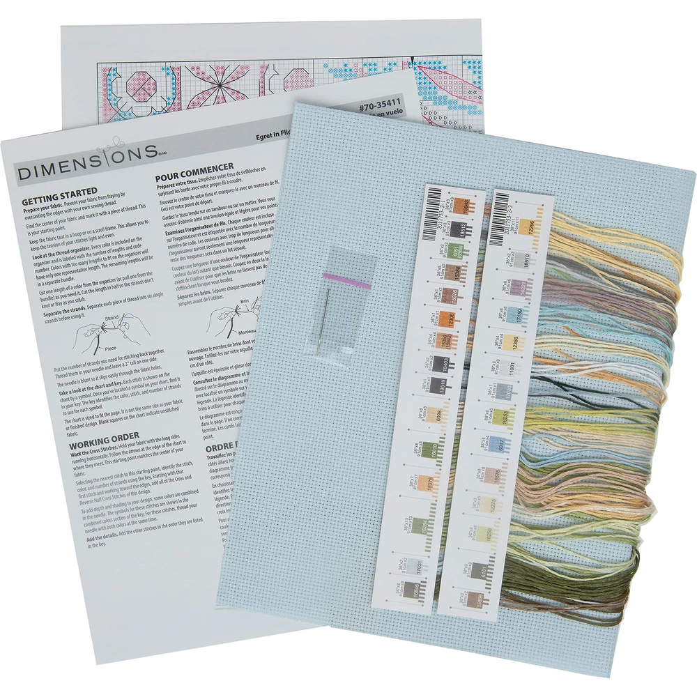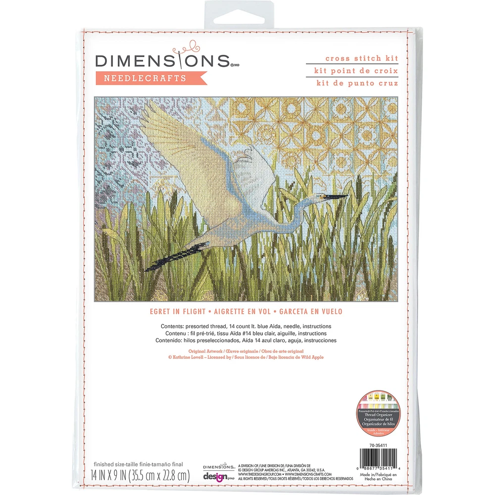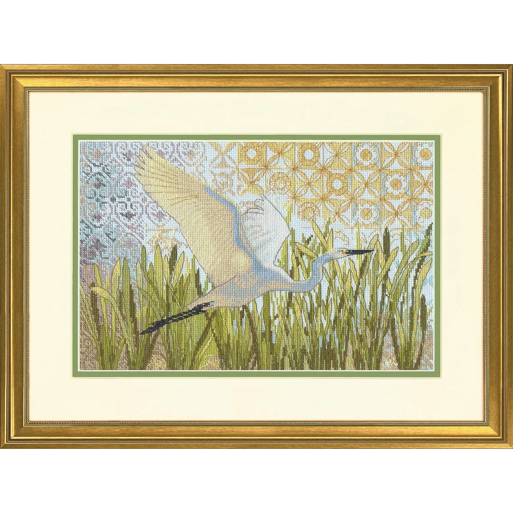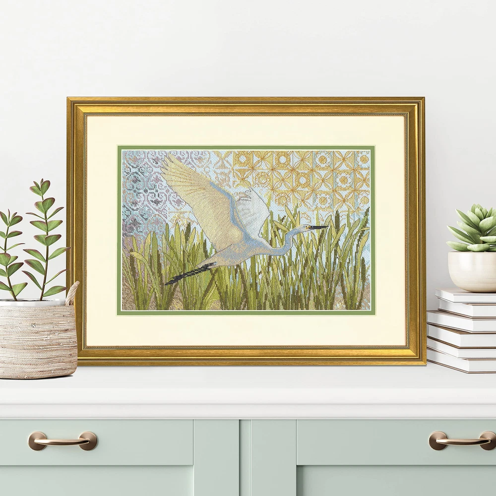 A beautiful egret soars among the grasses in this stunning counted cross stitch design by . It's a treat for the eyes for all bird lovers, and is designed to be an easy cross stitch pattern that's great for kids or adults looking to learn a craft! This beginner cross stitch kit comes with presorted thread, 14 count light blue Aida, needle, and instructions. Completed counted cross stitch pattern measures 14" x 9". Original Artwork © Kathrine Lovell – Licensed by Wild Apple. This counted cross stitch kit comes with presorted thread, 14 count light blue Aida, needle, and instructions Completed counted cross stitch pattern measures 14" x 9" A beautiful egret soars among the grasses in this stunning counted cross stitch set from A perfect beginner's counted cross stitch kit, this set features instructions with an easy-to-follow chart and key and detailed stitch diagrams, plus the package includes a large color image of the finished design for reference as you stitch Cross stitch crafts are a wonderful way to relax and unwind while handcrafting pieces of décor you'll love to display!