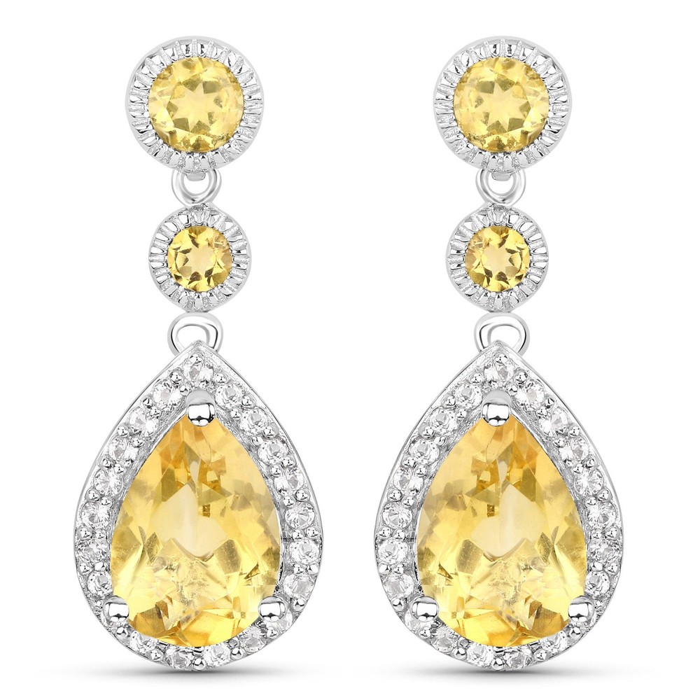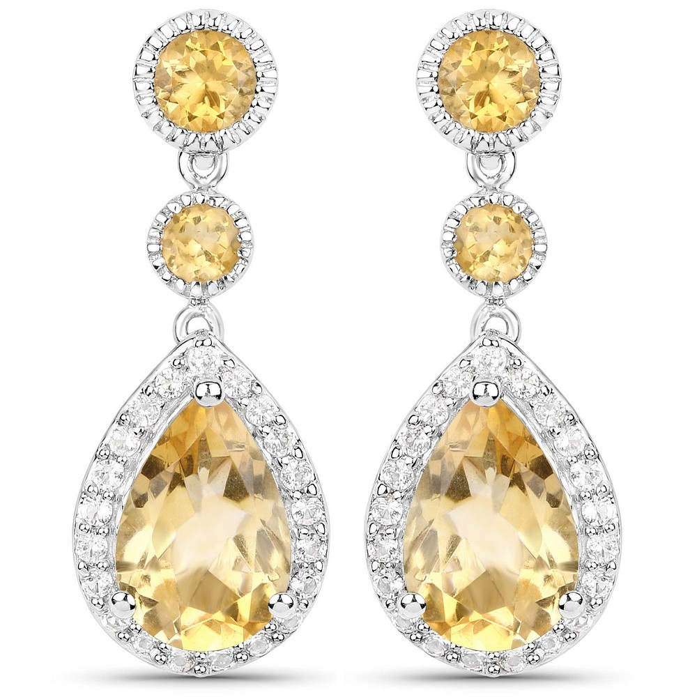 This item will be shipped on next business day! Citrine:Pear/12x8mm 2/5.00 ctw + Citrine:Round/5.00mm 2/0.90 ctw + Citrine:Round/3.50mm 2/0.32 ctw + Topaz White:Round/1.40mm 42/0.84 ctw Specifications: Gem wt. (Carat): 7.06 Gross wt. (gms): 5.27 Height: 0.25 Inches Length: 1.18 Inches Metal: .925 Sterling Silver Metal wt. (gms): 3.86 Width: 0.46 Inches