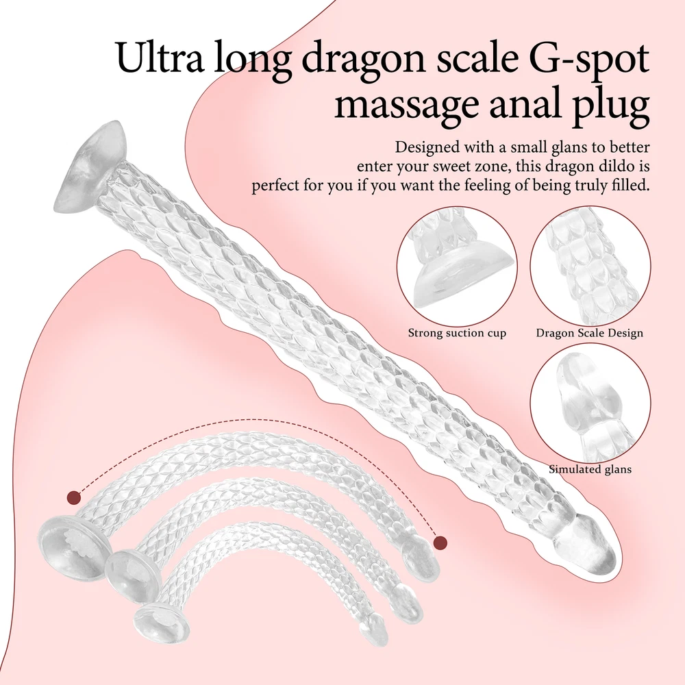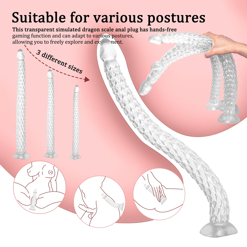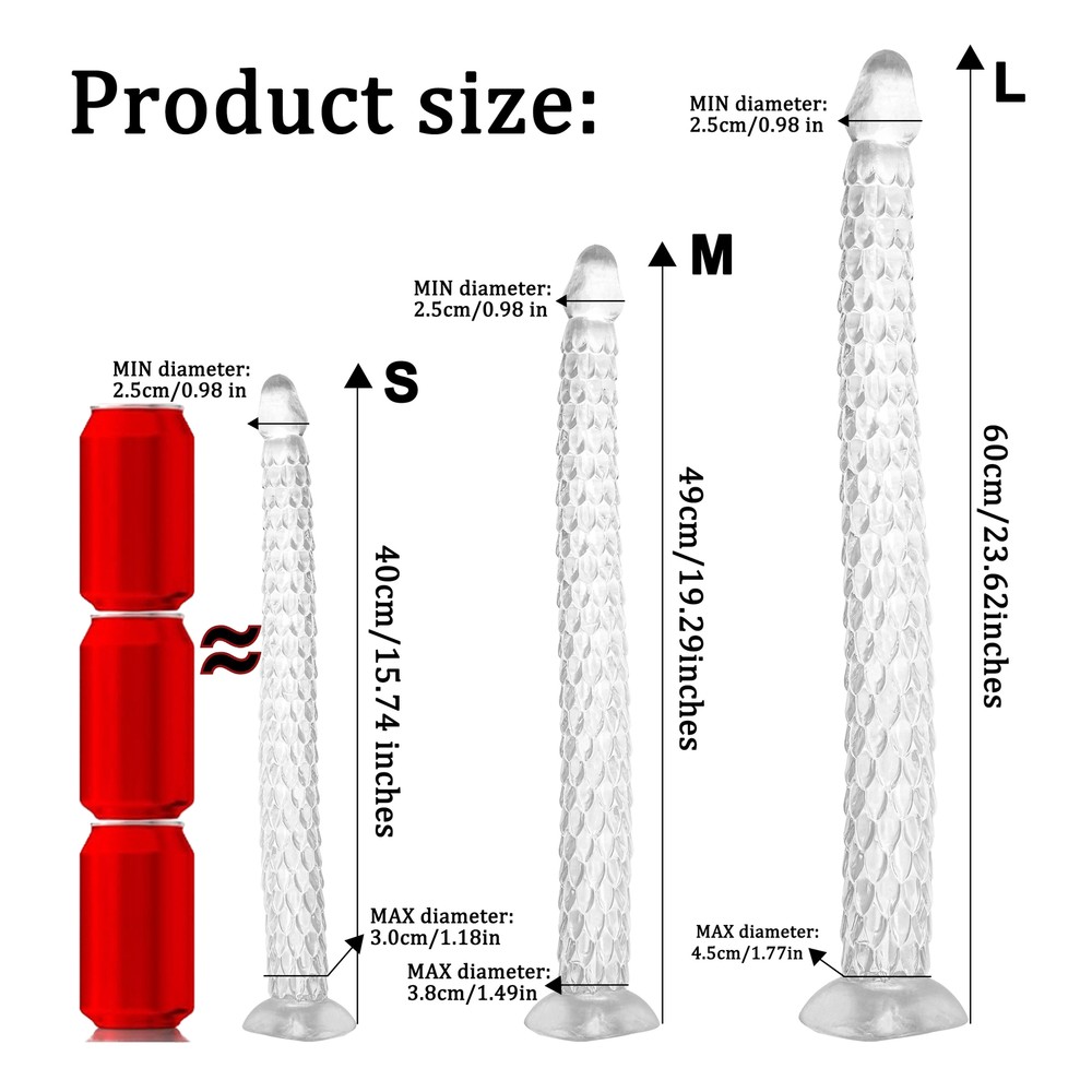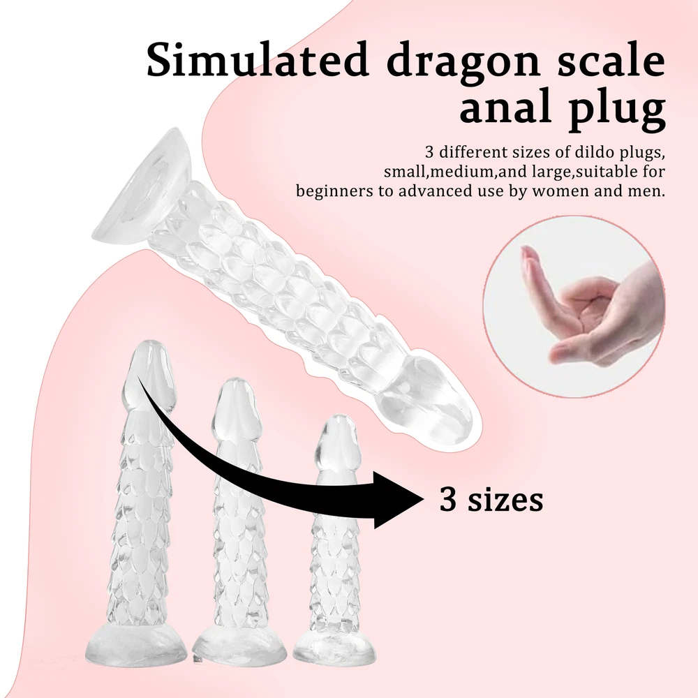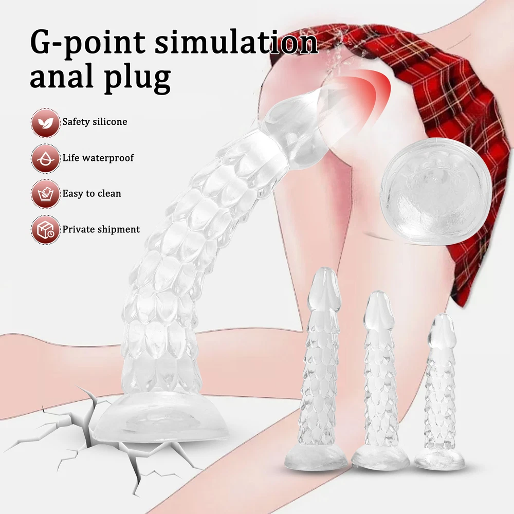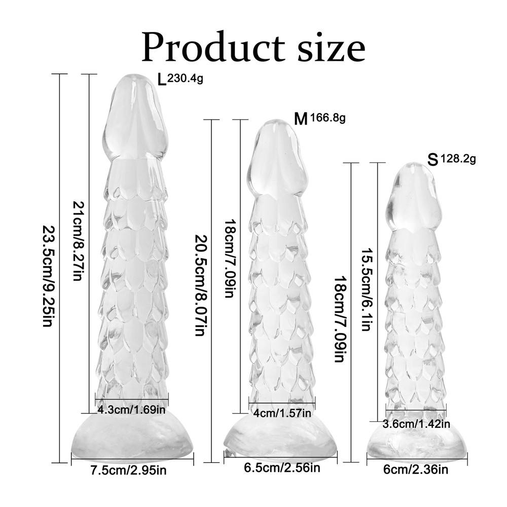 Private Shipping BDSM 7.09''-23.62'' Anal Butt Plug Dildo Stimulator Prostate Massager Wand Sex Toys Adults Couples US Shipping S pecifications : Condition:Brand new,high quality,100% waterproof. Material: Body Safe Medical Grade Silicone Color: Transparent With sucking cup Ergonomic,realist easy to use and operate Application: Vagina,Anal,G-spot,Prostate,Adults,Women,Men,Couples Short-plug: SIZE S: Total length: 170mm/6.69inches Dildo diameter: 30mm/1.18inches Suction Cup Diameter: 60mm/2.36inches Gross weight: 158g Net weight: 128.5g SIZE M: Total length: 200mm/7.87inches Dildo diameter: 40mm/1.57inches Suction Cup Diameter: 70mm/2.75inches Gross weight: 201.6g Net weight: 167.2g SIZE L: Total length: 230mm/9.05inches Dildo diameter: 45mm/1.77inches Suction Cup Diameter: 75mm/2.95inches Gross weight: 277.3g Net weight: 230.5g Long-plug: S:Length: 40cm/15.74 inches MIN diameter: 2.5cm/0.98 inches MAX diameter: 3.0cm/1.18inches M:Length: 49cm/19.29inches MIN diameter: 2.8cm/1.10 inches MAX diameter: 3.8cm/1.49inches L:Length: 60cm/23.62inches MIN diameter: 3.5cm/1.37 inches MAX diameter: 4.5cm/1.77inches Package includes: 1 x anal dildo with box Features: 1.Dragon Scale Butt Anal Plug/Dildo/Dong- Special shape, realistic glans, dragon scale body, bringing you a different experience. 2.Soft and flexible - The flexiblity is enough to use it via any angle, and you can use it hands-free. 3.Strong suction cup - It has powerful suction base, it can suck on the smooth surface, like glass,ceramic tile and so on. 4.Various ways to use - It fits for anal/g-spot/vagina/prostate deep massager, g spot dildo / anal beads / butt plug, women/men, female/male. Tips: The size is manually measured, allowing a little error! Secret and discreet package, and do not write it about sex toys! If you have any question, please contact us!