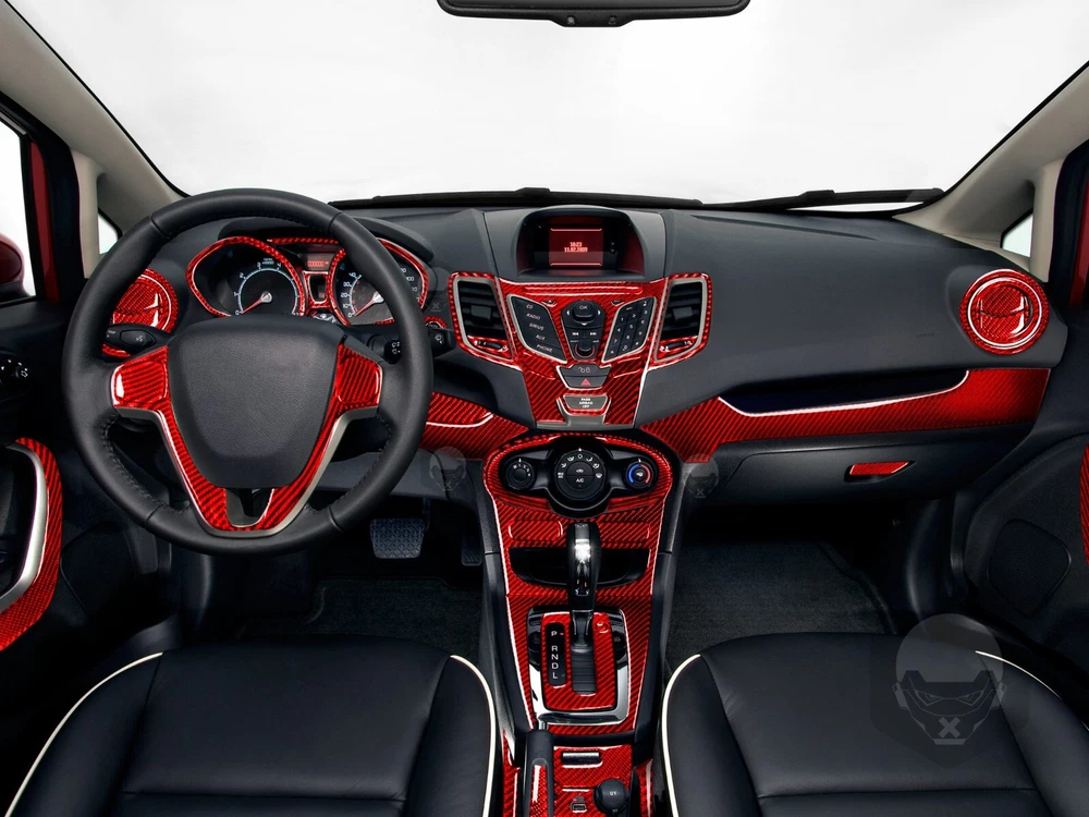 70Pcs Red Carbon Fiber Full Kits Interior Cover Trim For Ford Fiesta 2011-2019
