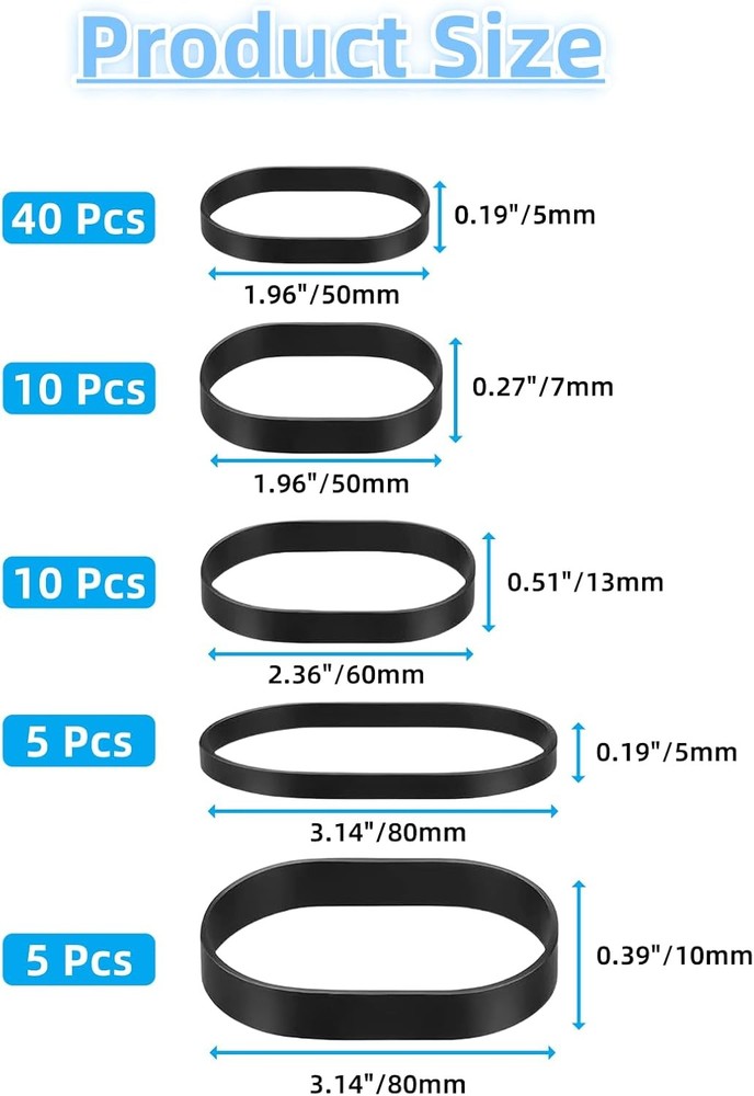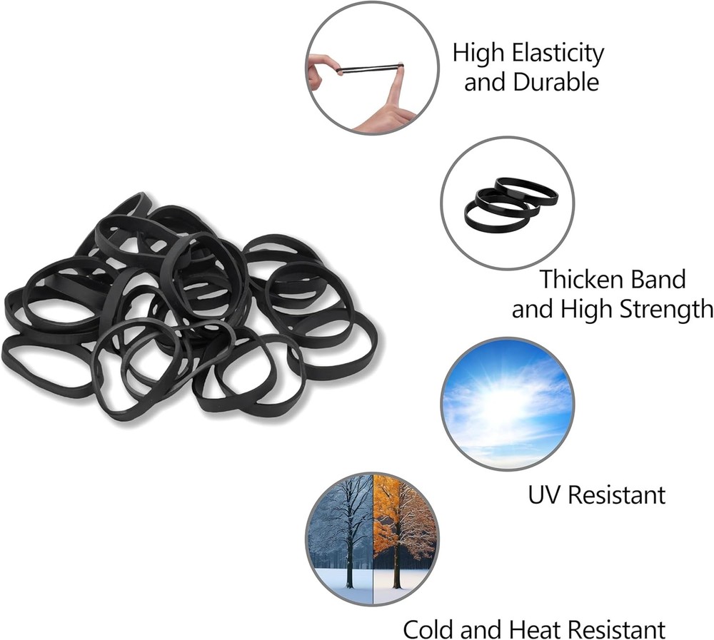 YiiSeeJo 70 Pcs Tactical Rubber Bands 5 Sizes, Black Elastic Wide Thick UV Heat