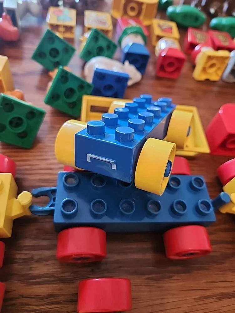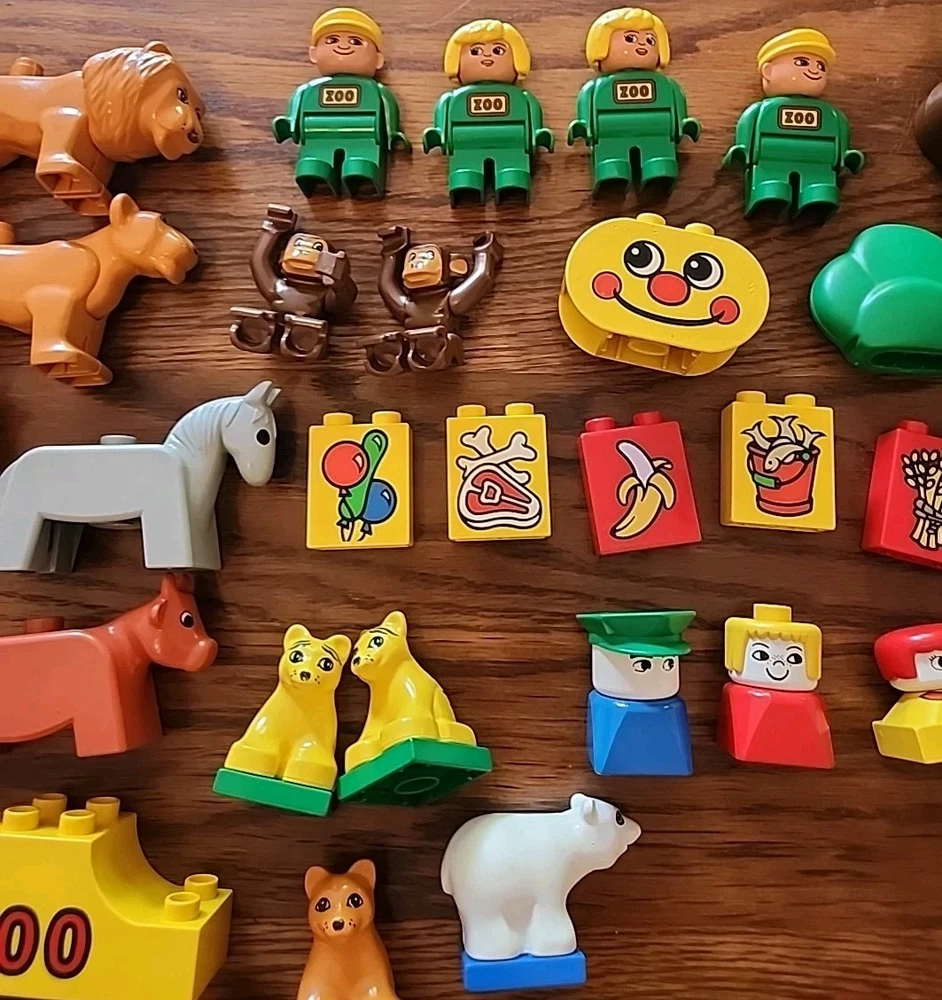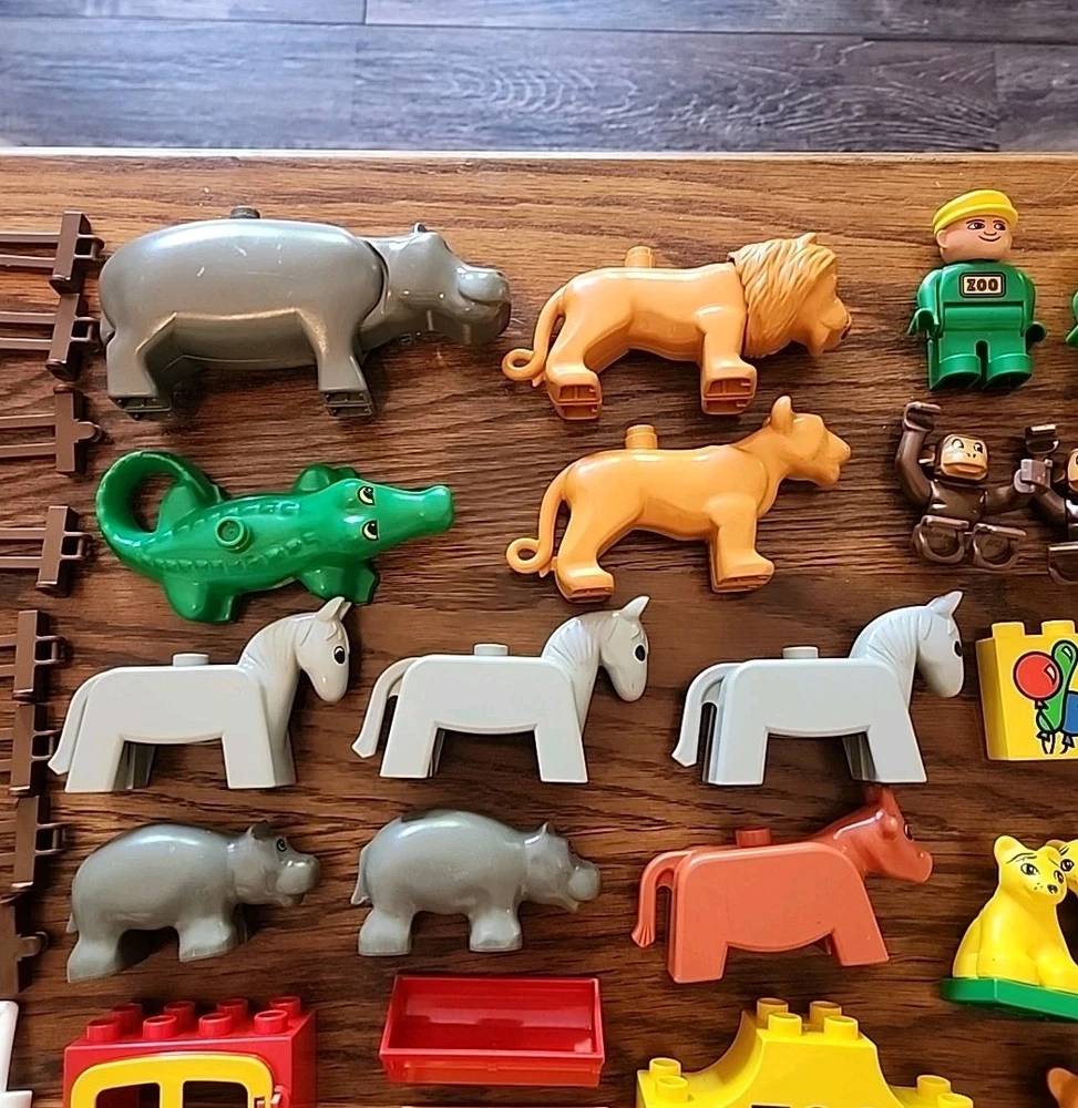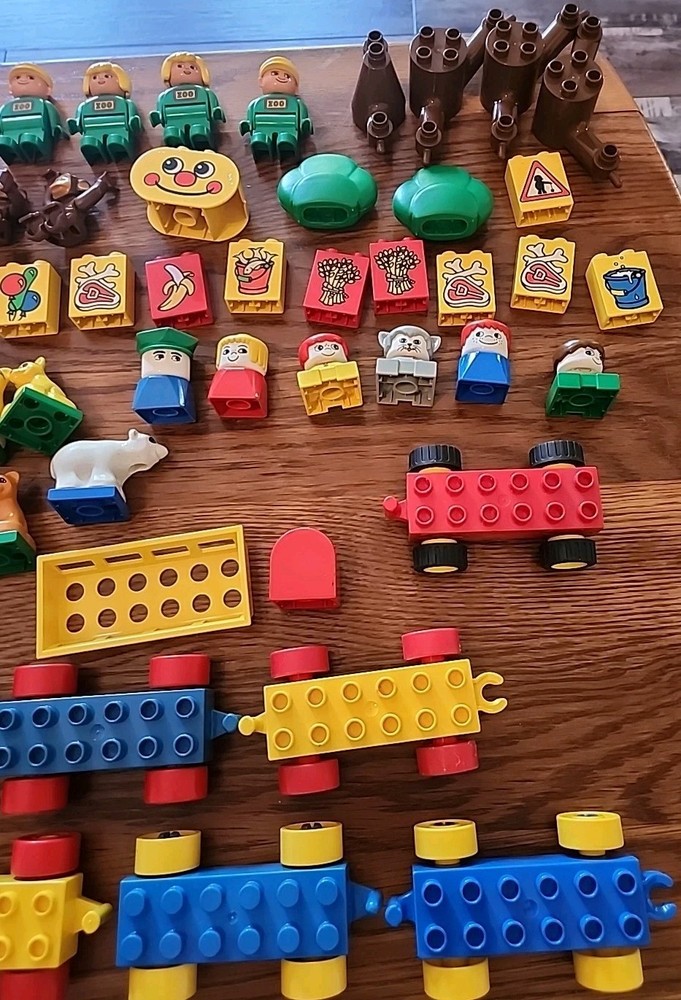Amazing lot!! Total of 70 pieces. Each piece has been hand washed and cleaned! The lot includes animals, blocks, train pieces, one motorized train piece, people, trees and more. One train piece has a broken hitch. See photos for exact details and sizing. Please pay close attention, what you see is what you will receive. Please feel free to ask any questions. Thanks for supporting our veteran owned small business 🇺🇲