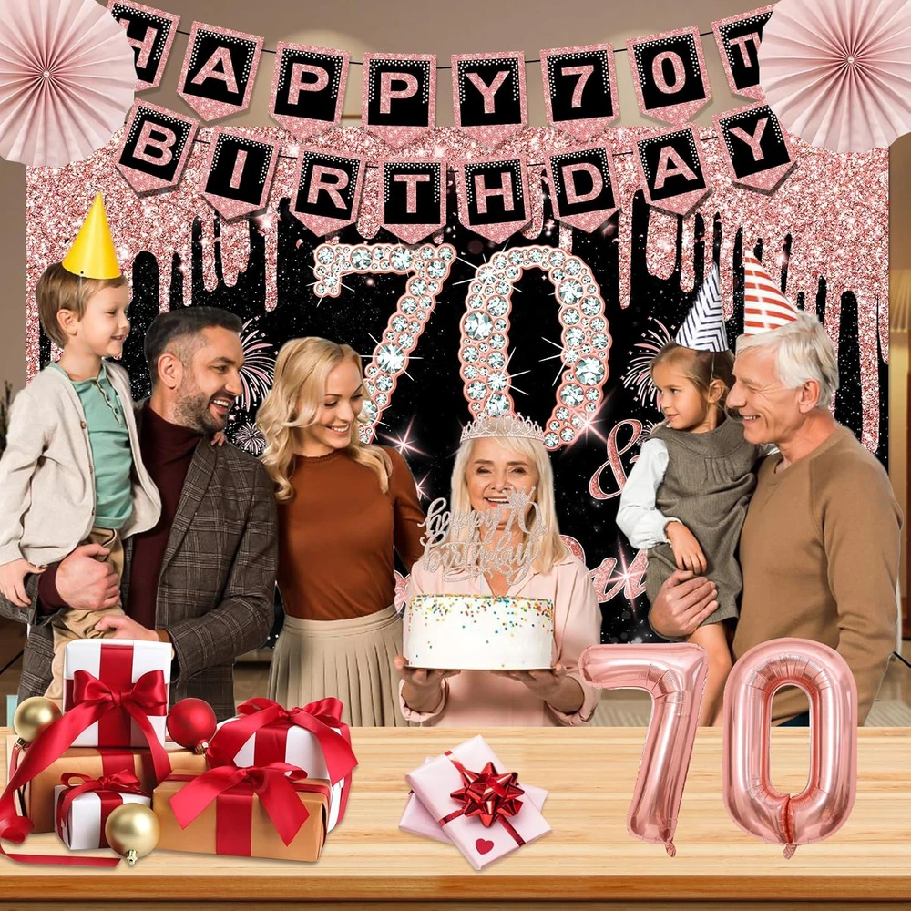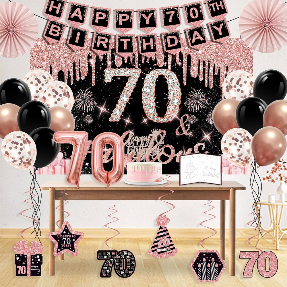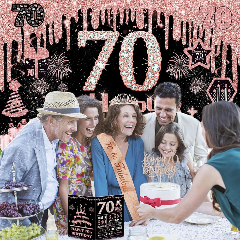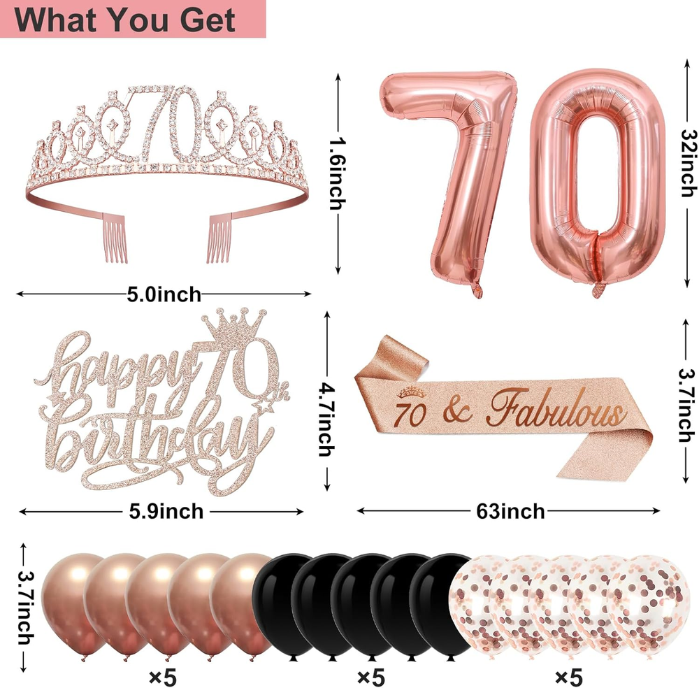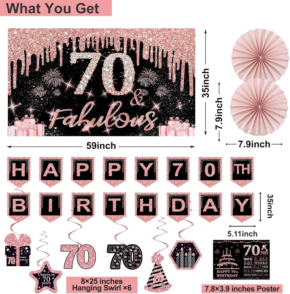 Store New Arrivals Add to Favorite View Feedback Contact Fast deliveries to the customer's home Quality customer service John Make the customers happy! 70Th Birthday Decorations for Women,32Pcs 70Th Birthday Party Decorations,Including Backdrop, Crown, Sash, Banner, Hanging Swirl,Cake Topper,Balloons,Paper Fans,Anniversary Card and Paper Fans Description 70th Birthday Decorations Kit:Including 1pc 70&fabulous Black Rose Gold Banner Backdrop,1pc 70th birthday tiara,1pc 70th birthday sash and a pin,1pc happy 70th birthday banner,7pcs Hanging Swirl,1pc happy 70th birthday cake topper,1set number 70 balloons 32 inches,15pcs latex balloons,1pc 70 years Anniversary Card and 2pcs paper fans.The perfect combination of multiple items easily creates a rich birthday atmosphere for your party. 70th birthday banner backdrop+Anniversary Card:The 70th birthday backdrop is 59x35 inches,be printed by quality digital resolution and it is large for Black Rose Gold party theme color.There are copper holes on the four corners of the happy 70th birthday banner, you can hang it on anywhere you want.The anniversary card of the 70 poster are sturdy enough to be displayed for a long time.Can be reused several times in different occasions. 70th Birthday Tiara+Sash:Elegant and gorgeous 70th birthday sash is made from glitter fabric and printed with rose gold words.The sash is in 62 inch length and comes with a pin for adjusting the length in need. Hand Made Glittery 70th Crown is Made from quality alloy and rhinestone. Birthday Tiara is with Combs at the end of both side, which Make sure it can grip the hair more tightly and comfortable to fit most women. 70th birthday cake topper:Glittery Happy 70th Birthday Cake Topper that are elegant prop to embellish your cake and cupcake. These dreamy Rose Gold 70th Birthday kit help to create a romantic and elegant 70 birthday celebration. Happy 70th birthday banner+Glittery Hanging Swirl:Use black gold background cloth as the perfect shooting background, Install the flash suspension vortex and banner.Use them to create the memorable event and boost a happy atmosphere for your friends and family, This will be a perfect way to take pictures at a party. Balloons+paper fans:Big 32inch 70 Balloons come with straw to inflate, Made of sturdy mylar foil material to stand the long-hour display.There are also 70 rose and gold latex balloons each, enough items to decorate your party.The paper fans unique backdrop for 70th Birthday Party. Product description Item model number P-BQCR-70F Style Rose Gold 70th Color Black, Rose Gold Pattern Solid Product Dimensions 35 x 0.08 x 59 inches Material Paper Item Weight 15.8 ounces Manufacturer recommended age 83 years and up Occasion Birthday Included Components Balloon, Banner, Cake Topper ABOUT US We offer the best prices around on high quality products. Our E-store includes media such as books, movies, music and games while offering electronics, toys, sporting apparel, clothing, tools, general home, garden items and more. SHIPPING We are always working hard to ensure your package arrives as soon as possible. Please understand that some factors like weather, high postal traffic, and the performance of shipping companies are outside of our control. We offer free shipping to the lower 48 states and ship within 2 business days of payment, usually sooner. We do not accept P.O. Boxes. Please provide a physical address. For shipping outside of the continental USA, we only use eBay's Global Shipping Program. The item is shipped to KY and then sent to the rest of the world. International customers are responsible for all duties and taxes. Continue to 'check out' to calculate costs for shipping the item to your country. Messages regarding eBay's Global Shipping Program MUST be directed at eBay EXCLUSIVELY. RETURNS We offer a 30-Day Return Policy on items in which you are not completely satisfied with. You have the option of a full-refund or an exchange of the item. No returns are available on items shipped outside of the USA PAYMENT We accept PayPal. CONTACT US This page content is yet to come Please ad us to your favorite seller and visit again later Thank You CUSTOMER SATISFACTION We try our very best to make sure every customer is completely satisfied. If there's a problem, message us! We're happy to help. WE ACCEPT