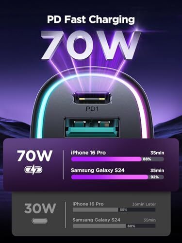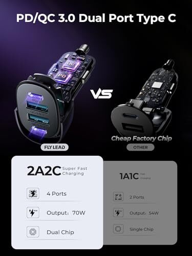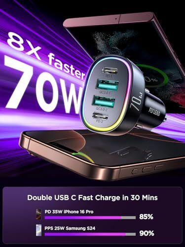 Return Policy Fast Delivery Trusted seller Fast Car Charger 70W 4 Ports Car Charger【A Must for Family Travel】 Super Fast USB C Car Charger Adapter for iPhone 16/15 Pro Max Plus Samsung Galaxy S24 Product Description Upgraded 4 Port Car Charger: 70W multi port charger adapter is equipped with 2 USB C ports and 2 USB A ports. Kids on the back of the car will love it while traveling. Because they won’t have to fight for the problem who can use the cellphone car charger first. Best for your trip 35W USB C &18W USB A: PD 3.0 port output 35W(max), 5X faster than 2.1A charger, charges iPhone 15 Pro from 0-50% in just 20 minutes. QC 3.0 port output 18W, charges most Android devices from 0% to 60% within 35 minutes Multicolored LED Light: The LED light lets you tell at a glance whether the usb cigarette lighter adapter successfully connects to power source or not. And it gives out just the right amount of light, allowing you to charge your devices in darkness, but not too bright to distract you UL and FCC Certification: car cigarette lighter fast charger has provided the advanced intelligent circuity safety system to prevent short-circuit, overheating, overcurrent, and overcharging. USB C car charger can automatically identifies any devices you plug in and distributes the optimal charging efficiency for you Universal Car Charger & Wide Compatibility: The usb car charger is compatible iPhone 16/15 series/Samsung Galaxy S24 S23 S22 S21+ S20 S10 Note 20/10 A52 A71 A51 A10E S9 S9 Google Pixel 7 pro/7/6, iPhone 14/13/12/ 11/10/XR/XS, iPad Pro /Air , sports watches, car recorders, cameras, and other USB-powered devices. Compatible with 12-24V cars, trucks, RV, etc Shipping Returns Payment Shipping Shipping is FREE to all addresses other than APO/PO boxes in the lower 48 states. All our stock ships from US-based warehouses. Shipped via USPS or UPS (depending on location and package weight) Unless stated otherwise, all orders will ship within 24-72 hours of your payment being processed. Check our feedback to see the great reviews of FAST shipping we offer. Returns Seller does not accept returns Payment We currently accept payment via eBay managed payments only. Once payment is cleared, we will dispatch your shipment within 1-3 business days. Please refer to the "Shipping" tab for more information regarding shipping speed to your destination.
