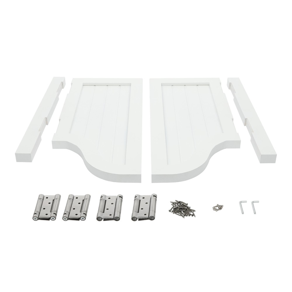 Material: Pine Wood, Stainless Steel Brand: Unbranded Color: White Style: Modern Mount Type: Door-mounted UPC: Does not apply Net Weight: 9.5kg/20.94lbs Assembly Required: yes Please Note: Shipment within one working day Package Size: 72*37*10cm/28.35*14.57*3.94in gtin13: Does not apply Each Doorpost Size(L*W): 5*3.5cm/1.96*1.37in Thickness: 35mm/1.38in Pattern Type: Vertical Stripe Product Size(L*H): 70*70cm/27.55*27.55n Opening and Closing Angle: 180° Number of Doors: 2 Each Door Size(L*H): 30*60cm/11.81*23.62in Gross Weight: 10kg/22.05lbs