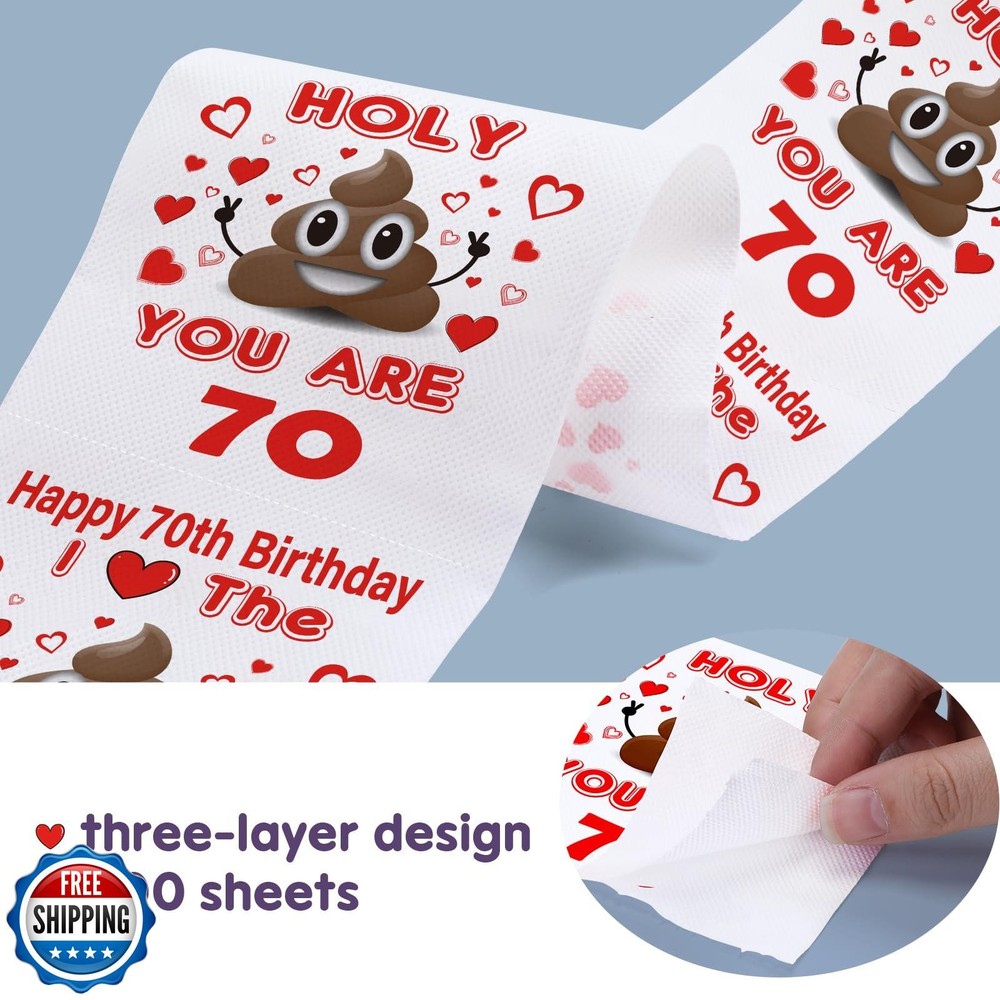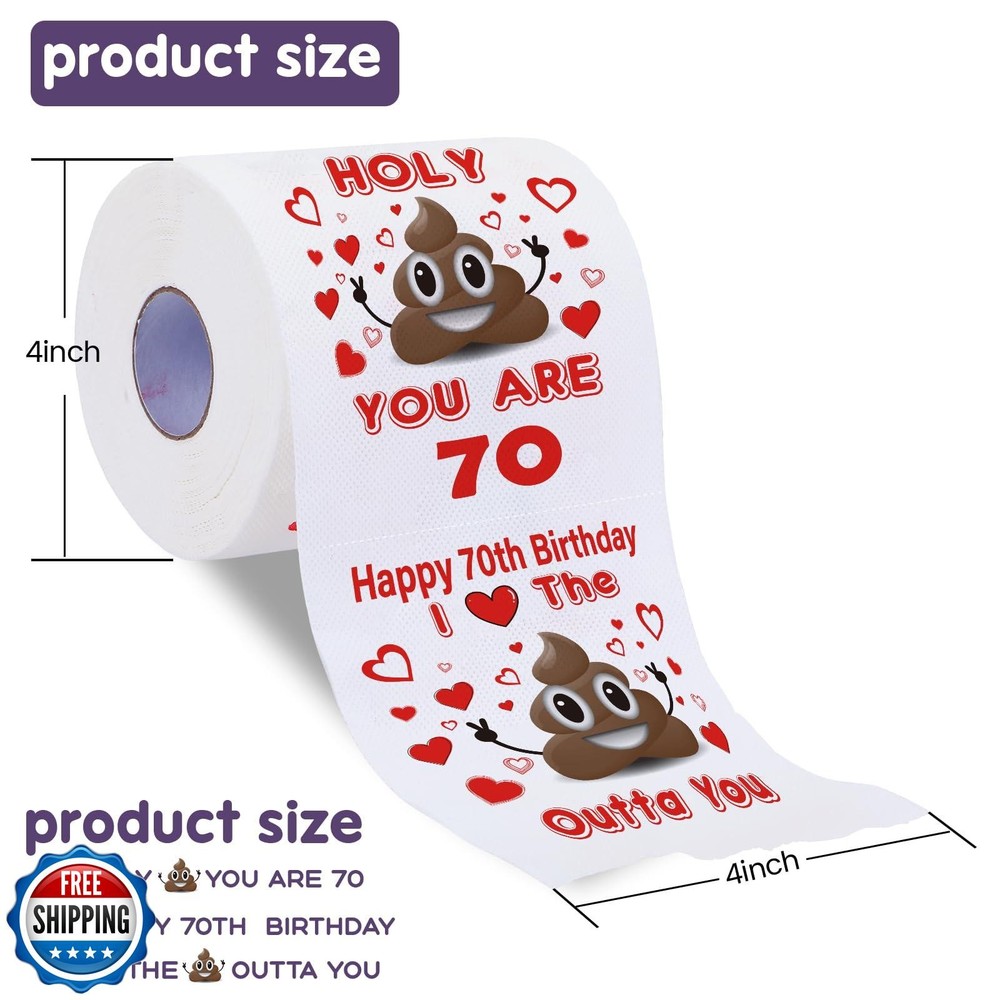 Givviza Funny 70th Birthday Toilet Paper Gag Gift for Men and Women - Novelty 70th Birthday Present for Friends, Family | Cheers to 70 Years Party Decorations, Unique Bday Party Features 🎉 Unique Design: (1)Holy 💩, YOU ARE 70! (2)Happy 70th Birthday, I ❤️ THE 💩 OUTTA YOU! Features hilarious and thought-provoking designs, guaranteed to bring a smile to the face of any 70-year-old, transforming this important birthday into an unforgettable and hilarious celebration! 🎈Make Their Birthday Unforgettable - Our hilarious prank toilet paper will stun and thrill all the guests! Perfect not just as a 70th birthday gift, but also as exceptional decorations and party supplies for a 70th birthday bash. Turn their special day into a memorable and hilarious bash! 🌟200 Sheets & 3 Layers Mega Roll-Crafting a hilarious gift that's both a massive roll and sufficiently long for diverse occasions, including wrapping around vehicles, decorating the house like banners, or adhering to walls! ❤️One-of-a-Kind Present for All Ages - When searching for an extraordinary and attention-grabbing gift for a special someone's 70th birthday celebration or home decor, this unique present fits the bill perfectly and is sure to be a hit. 🌄Environmentally Friendly- Made from recyclable paper, toilet paper decorations are an environmentally friendly choice. After the party, these decorations can be recycled or disposed of properly, reducing the environmental burden. This eco-friendly aspect aligns with modern concerns for sustainability. Shipping Free & Fast Shipping: We offer free shipping to most of the USA with a normal delivery time of 3-7 days. However, due to the current situation, additional delivery time (up to 3 weeks) may be required for some items. Alternative Carriers: We may use alternative carriers (e.g., USPS, FedEx, UPS) to ensure your package arrives safely and on time. Due to the use of multiple carriers, we are unable to provide a tracking number automatically. Handling Time: Orders are processed and shipped within 1-2 business days of receiving cleared payment. Shipping Restrictions: Shipping to Alaska, Hawaii, Puerto Rico, Guam, and other US territories may incur shipping charges or delivery restrictions. Please contact us before ordering, or your order can be refunded/cancelled. State Restrictions: Certain items may not be shipped to California due to state regulations. Contact for Tracking Updates: If you require tracking updates or have any concerns about the delivery of your order, please feel free to contact us, and we will be happy to assist you. Return Policy 30-Day Hassle-Free Returns: If you are not completely satisfied with your purchase, you can return the item for free within 30 days of receiving it for a full refund or exchange. Easy Return Process: Contact us, and we will provide you with a prepaid return shipping label and detailed instructions. No Restocking Fee: There are no restocking fees for returns. However, the buyer is responsible for return shipping costs if the return is not due to a seller"s error. Refund Processing: Refunds will be processed within 1 business day of receiving the returned item in its original condition. Feedback Your feedback is extremely important to us. We strive to provide the best products and customer service possible. If you are satisfied with your purchase, please take a moment to leave us a positive review. If you have any concerns or issues with your order, please contact us before leaving negative feedback. We are committed to resolving any problems and ensuring your satisfaction. Contact Us If you have any questions or concerns, please feel free to reach out to our customer support team. You can contact us through the eBay messaging system. We are available Monday to Friday, 9:00 am to 5:00 pm EST, and we will do our best to respond to your inquiry within 24 hours. Thank you for supporting our small family business!