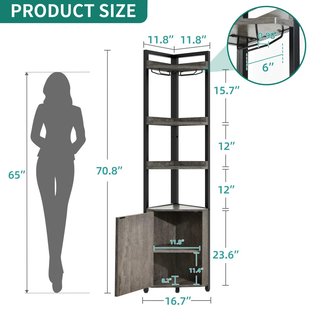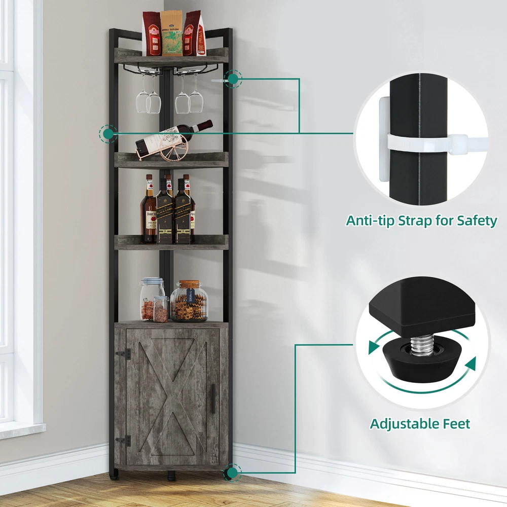 Featured types you may look for Corner Shelf Corner Shelf Corner Shelf Corner Shelf 71" 5-Tier Corner Shelf Corner Cabinet Bookshelf Stand Storage Rack with Door Item Description: Feature: Material: MDF+Steel Frame Color: Dark Mounting Type: Freestanding Weight Capacity: 36.5 lbs Dimensions: 11.8"D x 16.7"W x 70.8"H Room Type: Kitchen, Living Room, Bedroom, Dining Room Specifications: 1. Corner wine cabinet(without LED light): With 2 rows wine glass holders, you can hang your stemware wine glasses to keep them neatly organized and easily accessible, while avoiding accidental collisions 2. Thoughtful design: Each open shelf has raised edges to prevent your items from slipping and protect them from damage 3. Corner shelf with storage: The extra 2-tier storage cabinet with a magnetic catch allows you to securely tuck away your personal items or collections. The middle shelf can be removed for storing items of different heights 4. Farmhouse style: The grey color and barn door design of our corner bookshelf adds a touch of country charm to your home decor, perfect for any corner in your living room, bedroom, kitchen, office, or balcony 5. Sturdy industrial corner shelf: Its adjustable feet and non-slip pads ensure stability even on uneven floors. The shelf also comes with anti-tipping kit to prevent tipping over. You can install it on the wall for added safety Package Includes: 1 x Corner Shelf 1 x Packet of Fittings 1 x Instruction Manual More Display: Shipping ● The shipping rates listed are only for residential or commercial destinations in the continental 48 United States. All international sales will go through eBay Global Shipping Program.please ask us if there are any questions. ● We only ship the item to the address that is sent to us at the time of checkout. Please verify the correct shipping address in your PayPal account before making your payment. If we ship your item to an old or invalid address and you are not able to locate the item, we are not responsible for shipping a replacement. ● Currently, we do not ship to Hawaii, Alaska, Puerto Rico,APO/FPO/PO Boxes. ● We use USPS, UPS & FedEx as shipping method. ● Payments cleared before 12 PM PST, will be shipped on the same day. Payment ● We accept PayPal and all forms of credit card. ● We will only ship to the confirmed Paypal shipping address given with the payment. ● We do not offer local pick up service. Return ● 30 days Money Back Guarantee. ● If any package that needs to be returned, please contact our customer service first to receive a RMA form. ● All return items MUST be in brand new condition. About Us ● Specialized in aftermarket auto parts since 2012, we source and work directly with professional manufacturers to provide the highest quality parts at the most economical prices. ● We also has over 5 years of shipping experience with FedEx and USPS . Our Packing Quality is Guaranteed , Item Ship-ping is timely! On Nov 7, 2023 at 22:23:57 PST, seller added the following information: On Jul 16, 2024 at 08:53:40 PDT, seller added the following information:
