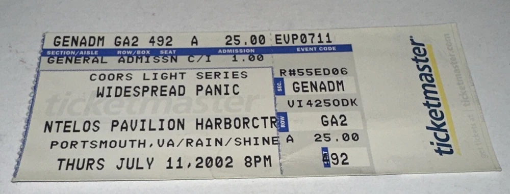 7/11/02 Widespread Panic Concert Band Ticket Stub Ntelos Pavilion Portsmouth WSP