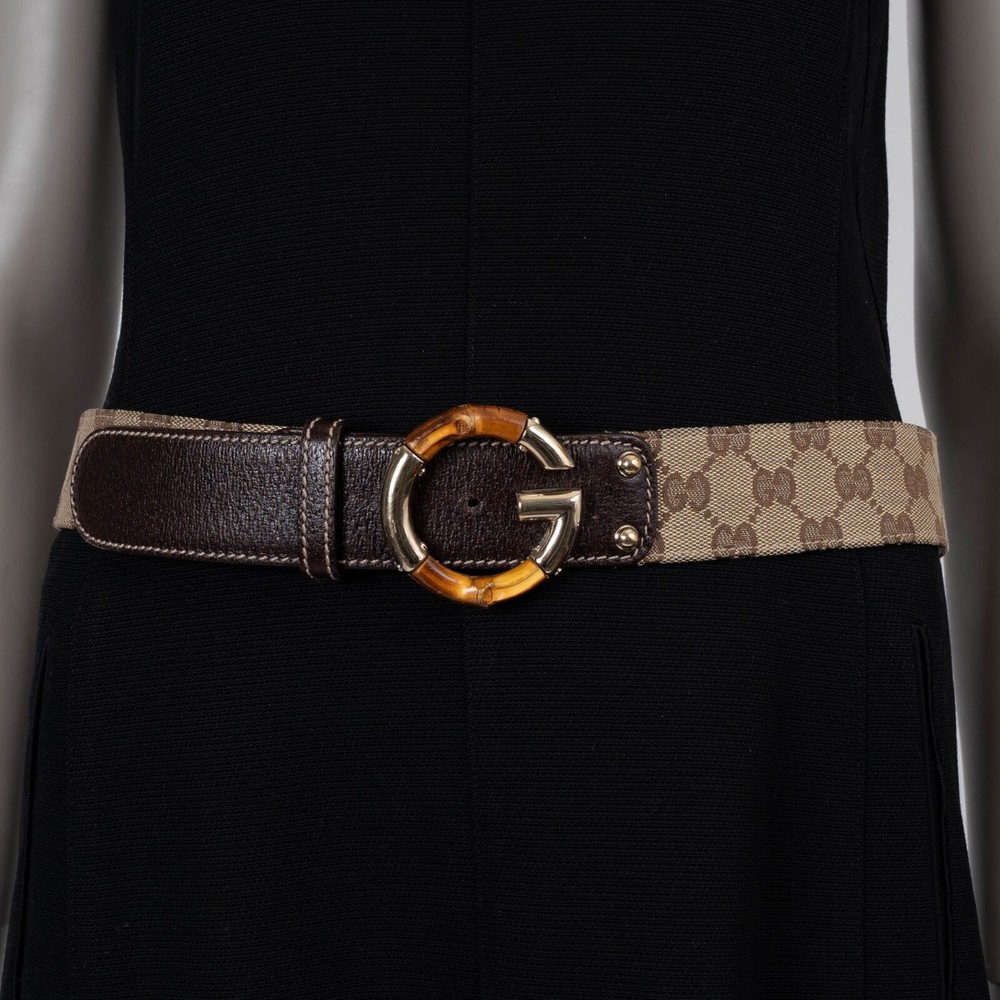 Welcome to LUX l Authentic Designer Consignment Rämistrasse 25, 8001 Zürich, Switzerland I Tue-Fri 11-18:30 & Sat 11-16:00 By bidding on our auctions you are agreeing to our Terms and Conditions below. All items come with authenticity guarantee! ------------------------------------------------------------------------------------------------------------------------------------------ Product Description: This 100% authentic Gucci belt in ebony and beige GG canvas is a refined take on the house’s iconic motif. Featuring a distinctive double G buckle in bamboo and light gold-tone metal, it blends natural elements with classic luxury. Dark brown leather trims with contrasting beige stitching add a sophisticated finish. A versatile statement piece, perfect for elevating any ensemble. Has been worn and and shows some scratches to the hardware. Overall in very good condition. Measurements Model 138456 Tag Size 85/34 Width 4cm (1.6in) Fits 82cm (32in) to 87cm (33.9in) Length 100cm (39in) Buckle Size Height 6cm (2.3in) Buckle Size Width 6cm (2.3in) Hardware Gold-Tone All our listings include only the listed item unless otherwise specified in the description above - Price does not include import duties & taxes - check your countries import laws prior purchase ------------------------------------------------------------------------------------------------------------------------------------------ Terms & Conditions Luxury-Shops is not affiliated with any of the name-brand items we offer for sale. Warranties and Liabilites: Luxury-Shops declines all responsibility and cannot be held liable for any damages caused by the use of a specific garment. We also cannot be held responsible for the quality of an item (we are not the manufacturer) or any damages resulting from a manufacturing defect. No warranties of any kind are given or implied. Condition of Merchandise: Luxury-Shops offers for sale luxury top-quality products. We fully disclose the condition of each item. In the description of each product, Luxury-Shops will specify the conditions if different from the standards set by the market (Required disclosure of prior use) The main characteristics of products are shown in great detail (through numerous photographs and in-depth descriptions). The products offered for sale MAY NOT correspond to the real garments in terms of image and color because of the Internet Browser or Monitor used (color calibration). Luxury-Shops disclaims all responsibility. Every used item offered by Luxury-Shops has been cleaned and restored to the best possible condition unless noted otherwise. Every used or vintage handbag has been polished and refinished. Your purchases will be sent to you ready to be used or worn. Please be aware that vintage items may be delicate and may not be as resilient as a brand-new item. Please take appropriate care when using a vintage item. Damage to items after receipt or use by customers is not the responsibility of Luxury-Shops. Luxury-Shops is a reseller of authentic designer and vintage merchandise. We are not an authorised dealer and are not affiliated with the brands we sell on our site. Store-new designer items are only available from an authorised dealer or the actual store. Once the item leaves the authorised dealer with a customer, the item is considered pre-owned. However, items can be pre-owned and in new condition - that is, never used by the owner. Below are the definitions of the descriptions we use. NEW : in new condition, that is, never used . This means the item may have been purchased by us from an authorized dealer or a store. New items may also be pre-owned, that is, purchased by one of our consignors and never used. These items may have minor signs of handling as would any item available at an authorized dealer or boutique given that customers would reasonably handle an item when trying it on or examining it for purchase. USED: the item has been carried or worn and may be in any of the conditions described below. PRISTINE/VIRTUALLY NEW : Appears to have been used only a handful of time and is nearly new in condition. May have very slight signs of having been used upon close inspection. EXCELLENT : Used and in top condition. There may be faint signs of wear, slight scratches, marks or nicks which are not particularly noticeable and will not affect the use or wear of the item. Our descriptions and photographs will clearly indicate the condition of the item. GOOD : Used, may be an older or well-loved item. There may be slightly more noticeable signs of wear, scratches or marks. These will not affect the wear or use of the item. Our descriptions and photographs will clearly indicate the condition of the item. VINTAGE : Typically around 20 to just under 100 years old. Our vintage items are carefully examined and selected. Most are gently or rarely used, meticulously stored or cared for and will come to you in a perfectly usable condition. However, these are unique items which may be of a finer and more delicate nature than brand-new items so please be sensitive to this and have reasonable expectations of their resilience. We do not make allowances for unreasonable expectations in the condition of our items. Product Descriptions: We make every effort to display the products featured on our web site as accurately as possible, using a large array of unaltered digital photographs and detailed descriptions. Our examination and assessment of merchandise is meticulous and conducted with great attention to detail. Our expertise and product knowledge comes from many years of experience with authentic designer and vintage items. We make as much effort as is humanly possible to disclose all relevant information required for you to be completely confident about your purchase. However, the display and colour capabilities of your computer monitor could affect the colours you see on the screen and these may differ from the actual product. Luxury-Shops is not responsible for monitor limitat