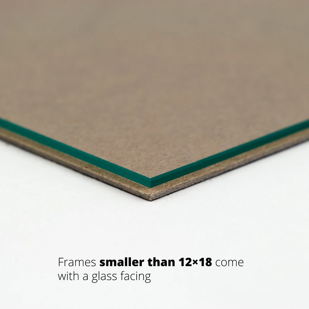 Traditional style; black; wood grain finish Frame includes: glass, rigid black backing and pre-attached stamped hanging hardware Frame holds a 12 inch by 16 inch photo/print (viewable area is slightly smaller) Frame moulding is .825 inch wide; solid wood Made in the U.S.A.