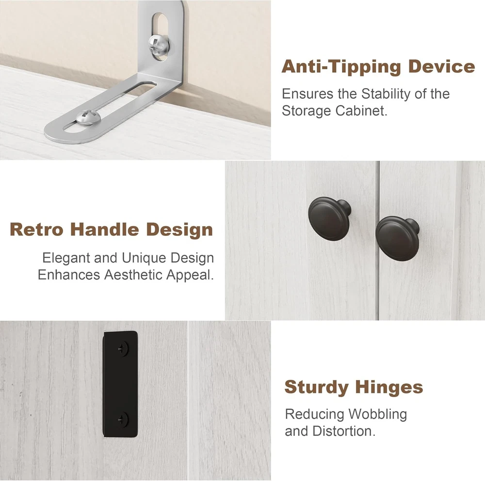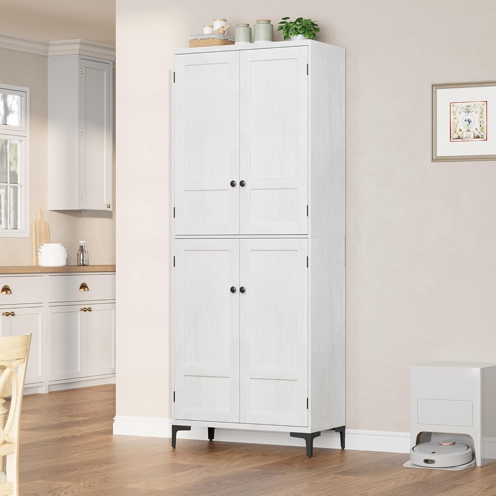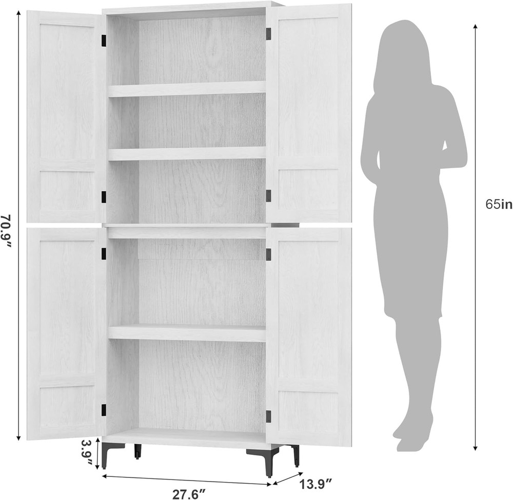 71 Inch Tall Storage Cabinet, Kitchen Pantry Cabinet 5 Tier Bathroom Cabinet with 4 Doors Adjustable Shelves for Kitchen, Dining Room, Bathroom Product Description About this item Vertical Elegance: Standing at 71 inches tall and measuring 27.56 x 13.78 inches, this tall storage cabinet features five tiers and four doors, providing ample space for organizing items. Its narrow design makes it ideal for tight spaces in your home Tailored Storage: This narrow wooden cabinet features one adjustable shelf for customized storage solutions. Modify shelf heights to accommodate items from pantry goods to bathroom essentials, ensuring everything has its place Built to Endure: Made from thick engineered wood and sturdy metal hardware, this bathroom cabinet offers stability and longevity. The magnetic closure secures the doors, and the elevated bottom guards against damage for added durability Multi-Purpose Use: This farmhouse storage organizer serves as a bathroom cabinet, pantry storage, accent cabinet, or garage and office cabinet. Its versatile design enhances organization throughout your home, making it a practical addition to any room Effortless Assembly: With clear instructions and labeled parts, assembly is simple. For best results, having two people assist is recommended, ensuring a smooth and efficient experience while you enjoy your new pantry cabinet Kitchen Pantry with Doors Not just for the kitchen, this storage cabinet is suitable for Bathroom, Dining and Study spaces, and more, catering to a variety of storage needs. With its dual-door design, this cabinet provides ample storage for towels, toiletries, and bathroom essentials, keeping your bathroom organized and clutter-free. Previous page Next page Previous page MDF Board Showcasing exquisite textures, combines elegance with durable storage, enhancing your space's style. Metal Leg The cabinet features sturdy metal legs, ensuring stability and adding a modern touch to your decor. Next page Sturdy and Modern Design Features robust metal legs that ensure exceptional stability and durability, adding a contemporary touch to decor while providing practical support. Anti-Tip Design Equipped with an anti-tip design, this cabinet stability during use, offering additional safety, especially for homes with children or pet. Classic Charm Handles add a unique character and charm to the cabinet, seamlessly blending modern aesthetics with traditional elegance to enhance your space. Convenient Setup Designed with easy-install hinges, simplifies the assembly process, allowing users to set it up quickly Storage Cabinet