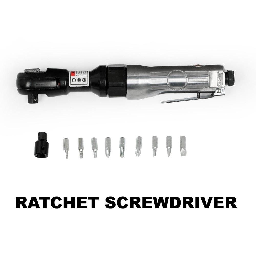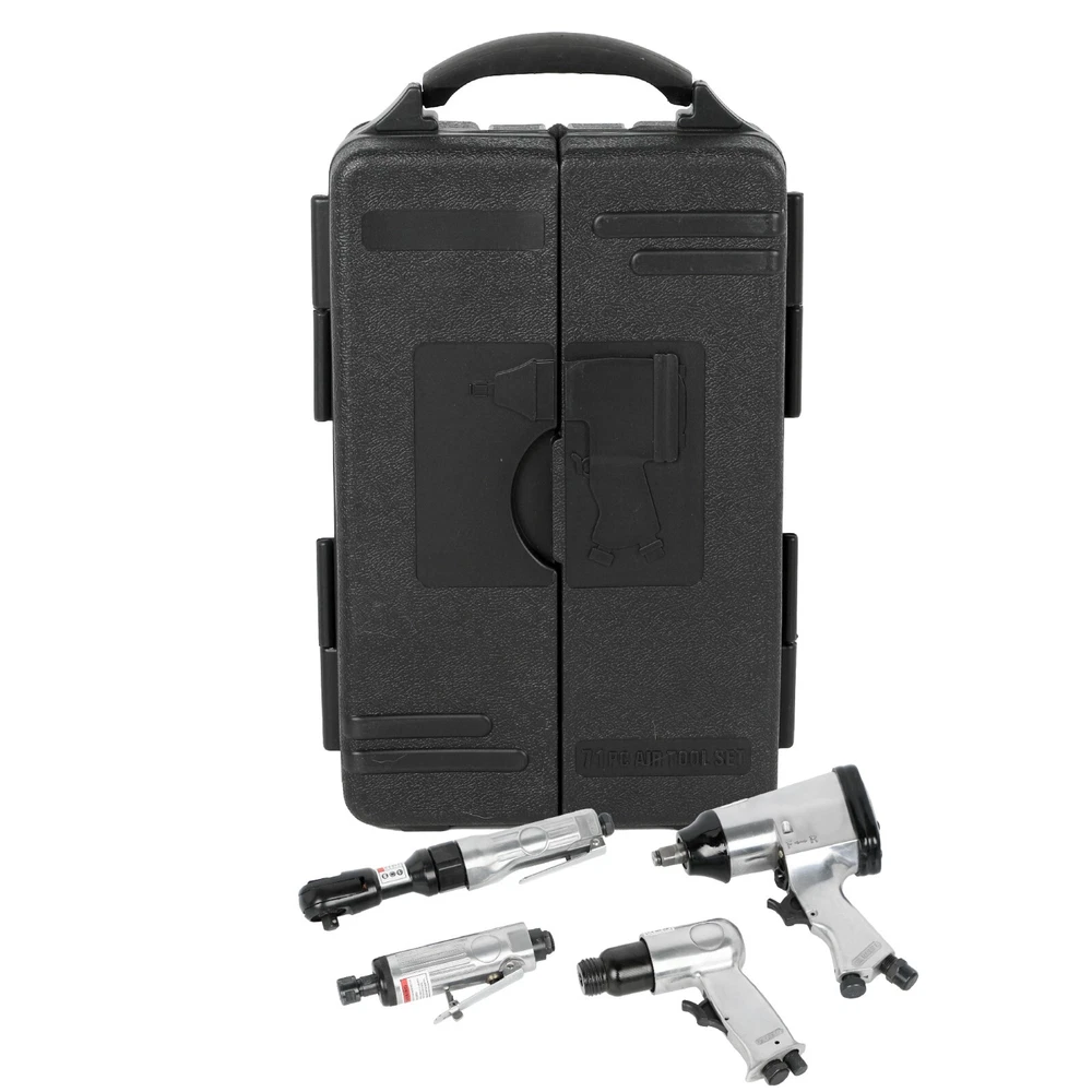 Specification Product Information Item Code: W2660P278755 Product Type: Single Box Product Product Name: 71 Piece Air Tool and Accessories Kit, Impact Wrench, Air Ratchet, Die Grinder, Aire Hammer, Hose Fittings, Storage Case Main Color: Black and Silver Main Material: Steel Product Dimensions Assembled Length (in.): Not Applicable Assembled Width (in.): Not Applicable Assembled Height (in.): Not Applicable Product Weight (lbs.): Not Applicable Package Size Length (in.): 19.00 Width (in.): 12.00 Height (in.): 4.70 Weight (lbs.): 25.35 Product Features Our top-quality air tool set includes four highly sought-after tools - a 1/2 inch drive impact wrench, air hammer, 1/2 inch drive ratchet wrench, and an air grinder with a 1/4 inch collet and sealed ball bearing construction. These tools are designed to deliver exceptional performance and are perfect for a variety of tasks. To tackle almost any job, our air tool set comes with a comprehensive 71 piece set of versatile accessories and attachments. With included hose fittings and couplers, hammer chisels, grinding stones, impact sockets, and more, you'll have everything you need to handle any project that comes your way. We understand the importance of tools that stand the test of time. That's why our air tools are built to last. With heat treated cylinders, heavy-duty aluminum housing, and a protective rubber scuff guard, our tools are designed to provide a lifetime of reliable use. Invest in tools that won't let you down We've included a heavy-duty blow molded case to ensure that your air toolset is always protected and organized. This sturdy case not only keeps your tools safe during storage and transportation but also allows for easy access and quick identification of each piece. Stay organized and keep your tools in pristine condition with our thoughtfully designed case this air toolset is a must-have addition to any garage or shop. It will quickly become your go-to set for getting tasks done efficiently and effectively. Whether you're a professional mechanic or a DIY enthusiast, our air toolset will make quick work of any job you encounter Description