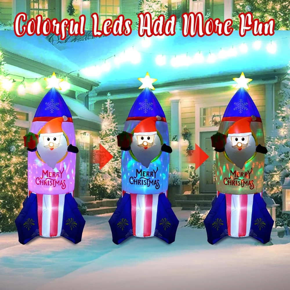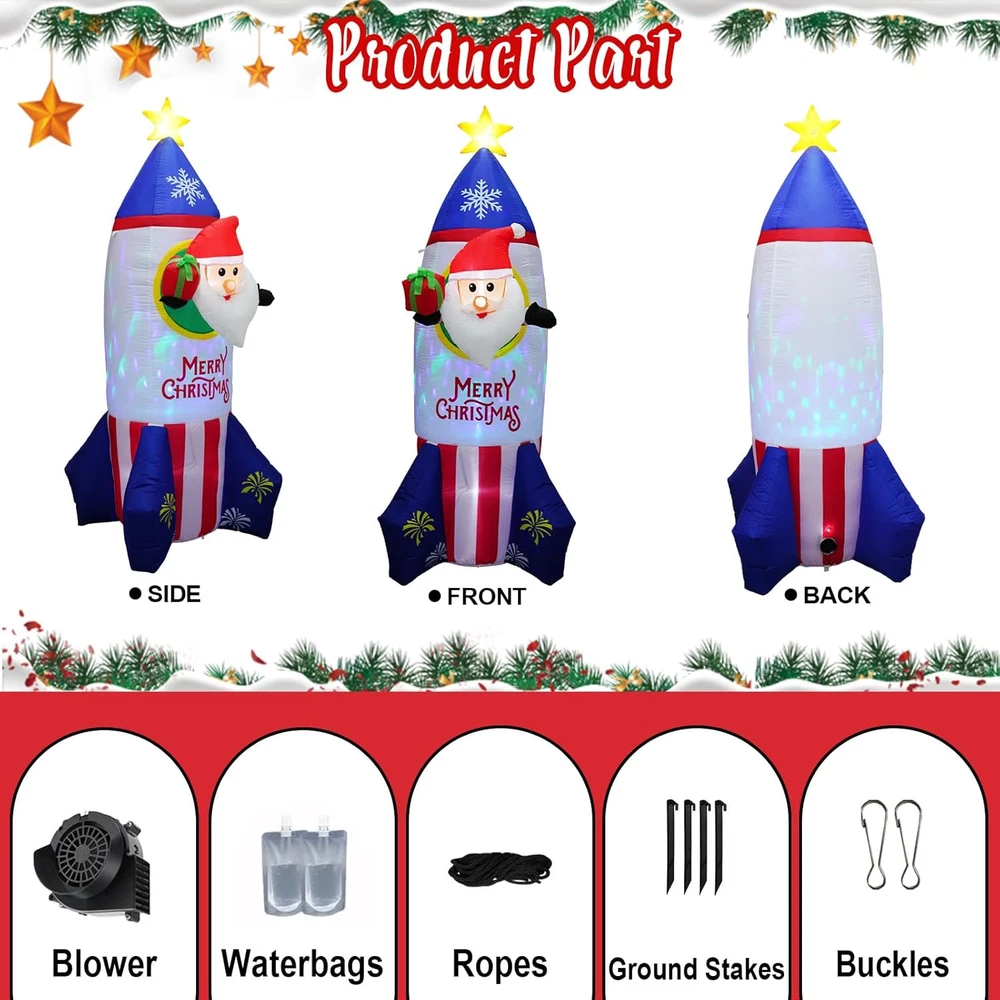 7.2 FT Christmas Inflatable Santa Ride Rocket Decoration Blow up LED Light Decor Description Item model number Santa Claus Ride Rocket Item dimensions L x W x H 42 x 33.6 x 87 inches Product Dimensions 42 x 33.6 x 87 inches Color White & Blue Material Polyester Country of Origin China Style 7.2FT Santa Ride Rocket Item Weight 2.35 pounds Theme Christmas Occasion Christmas Special Feature Weather Resistant Light Color Colourful Cartoon Character Santa Claus 【Premium Quality & Safety】 The Christmas inflatable Santa Claus rides rocket decoration features lightweight and weather-resistant polyester as well as a compact design, which is equipped with a built-in upgrade waterproof air blower with a UL-certified plug and it is also very safe for children. A must-choice for your Christmas decoration 【Unique Design 】 Christmas Inflatables Santa ride rocket(7.2*2.8*3.5 FT) is great for your home and yard which will get your family and friends in the festive spirit and create a more atmosphere 【4 Bright Led】 This cute blow up Christmas decoration has built-in fan, 3 internal bright LEDs and 1 RGB light. Freely change red, blue, and yellow lights in a few seconds. Plugging it into a standard electrical outlet will inflate in seconds and illuminate your Christmas 【Easy to Setup & Inflate】 The Christmas Santa inflatables are specially designed for quick and easy inflation following simple steps: close the zipper in the rear, plug it in the socket, and inflate it in seconds. The included ground ropes and tethers will keep it securely in place 【Perfect Gifts & Service】 Enjoy the 7.2FT Xmas inflatable to bring your family more fun indoors and outdoors. If you encounter any problems with our products, please get in touch with us first. We will provide you with comprehensive solutions to ensure normal use of the products. We also offer free fan motor replacement within 2 years Product Description Shipping Fast shipping is very important for us. Our expedited US shipping service is FREE. Your order will be shipped within 2 business days upon full payment received. Your order will be delivered within 2-3 business days after the handling time. Warranty & Returns 30-Day FREE Return Policy offered for unsatisfactory items. Options include: Refund or Exchange for another item. Contact us Customer satisfaction is our top priority. If you encounter any issues with our product, please don't hesitate to reach out to us. We are committed to ensuring your satisfaction and will go above and beyond to assist you. Your happiness is our goal! Copyright © 2024 BBQFLAME. | All Rights Reserved