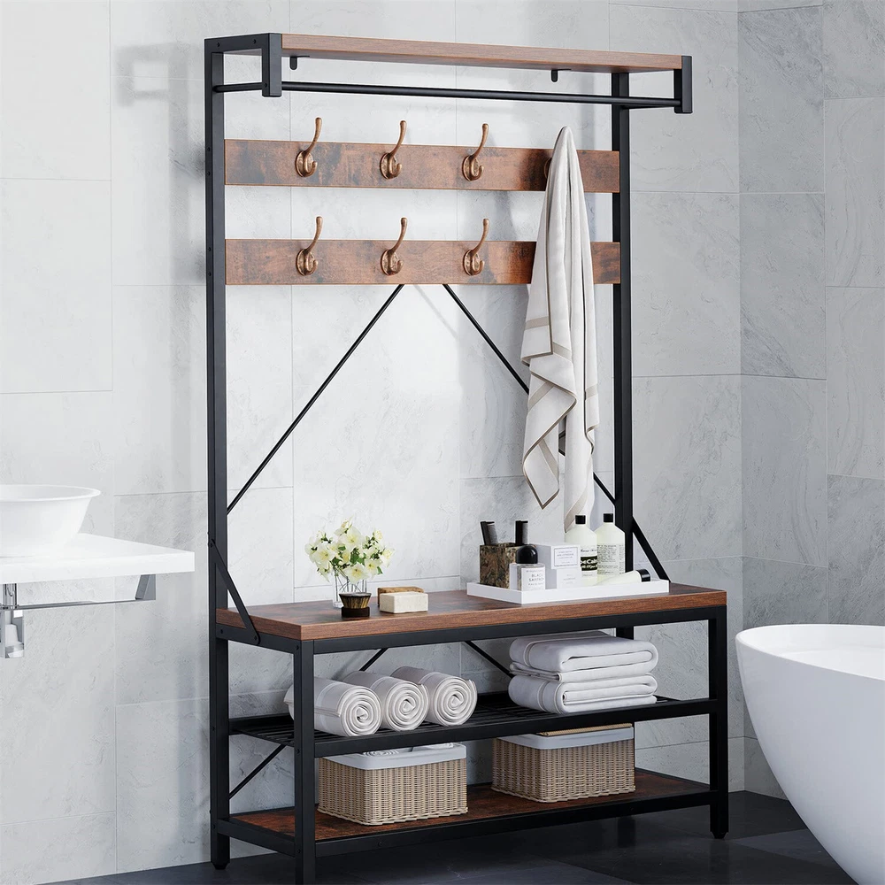 Material: ‎Wood, Iron, Metal Type: Coat & Hat Racks Product Dimensions 45.67 x 17.52 x 4.92 inches: 45.67 x 17.52 x 4.92 inches Item Weight: 44.3 pounds Mounting: Free Standing UPC: Does not apply gtin13: Does not apply Brand: grvee Manufacturer Warranty: 5 Years