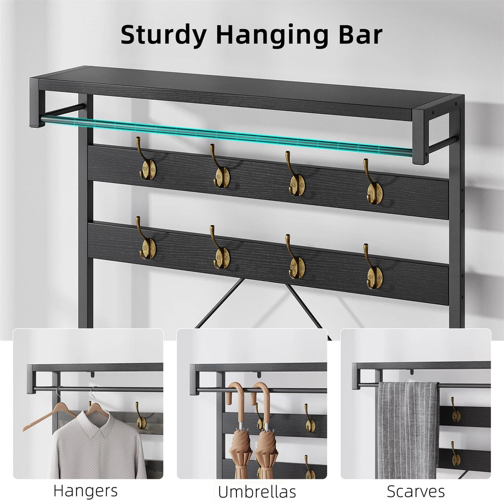 🎱72" Hall Tree Shoe Rack for Entryway Storage Industrial Coat Rack Shoe Bench N