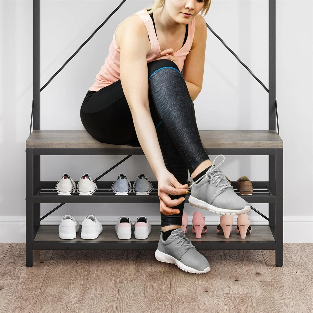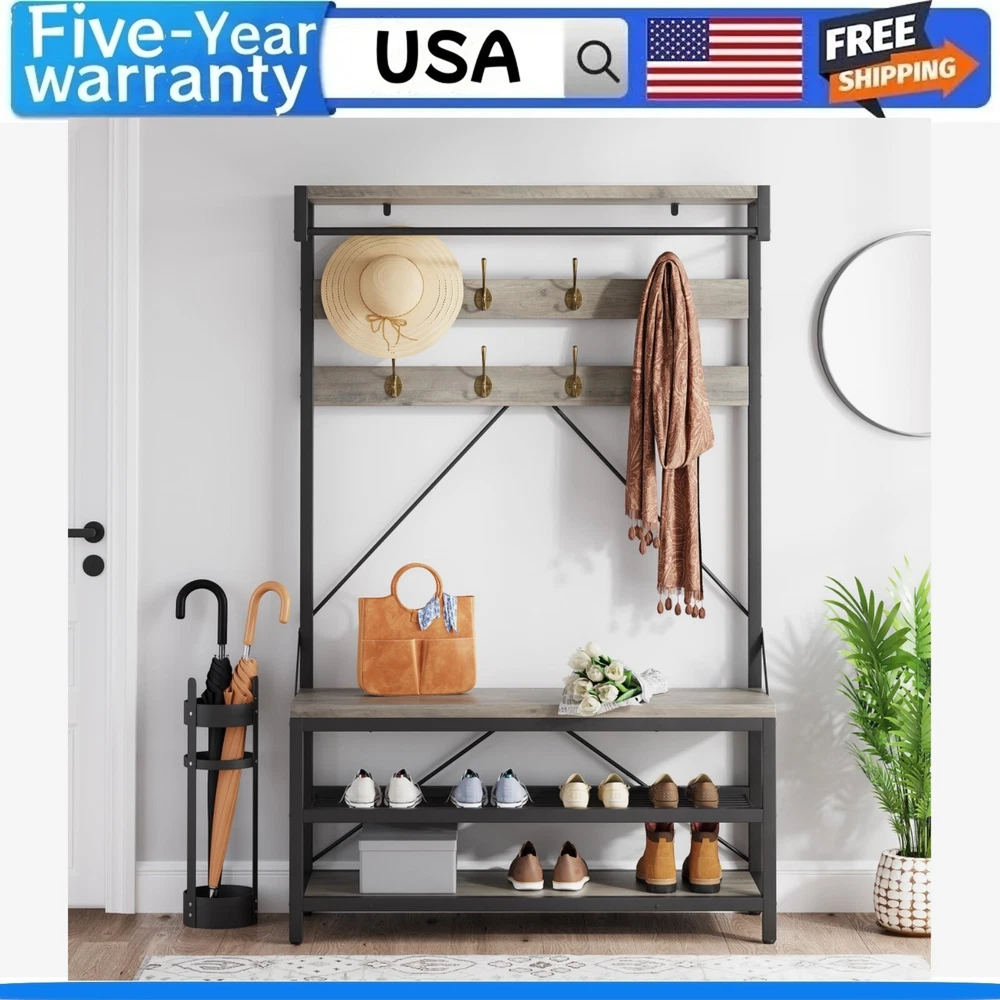 🎱72" Hall Tree Shoe Rack for Entryway Storage Industrial Coat Rack Shoe Bench