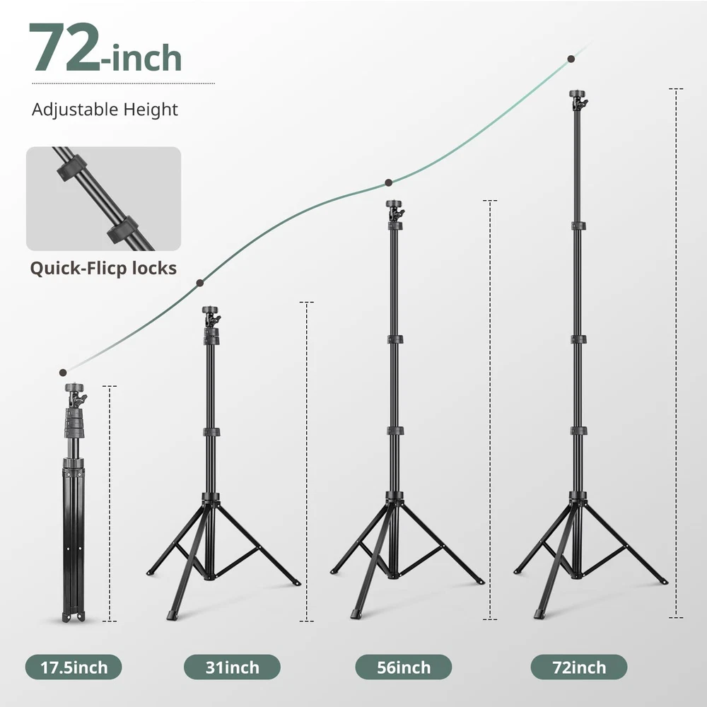 72" Phone Tripod, Extendable Cell Phone Tripod Stand, Selfie Stick Tripod with Wireless Remote and Phone Holder, Compatible with iPhone Android Phone, Camera 72in Flexible Tripod: Taller than most phone tripods, offering greater height options. With a minimum storage length of 20in, it's easy to transport indoors or outdoors. Fully extendable to 72in, providing a wide range of shooting angles for perfect photos Stable & Reliable: Crafted from premium aluminum alloy, our tripod is both sturdy and lightweight, with twist locks to prevent tilting or wobbling. It resolves common issues found in other selfie stick tripods, ensuring a stable shooting experience Versatile Phone Holder: Our phone clip features a double-hole design and an upgraded rubber protection layer, ensuring a soft, non-slip grip to protect your phone. The adjustable phone clip (2.3"-5.7") is compatible with most cellphones, providing versatility and security Handy Remote Control: Our wireless remote is compatible with most iOS and Android smartphones, with a range of up to 10m/33ft. It features a replaceable button battery (CR2) and is perfect for capturing family photos, selfies, vlogging, and live streaming with ease Comprehensive Package: Includes 1 x Phone Tripod, Phone Holder, Remote, Adapter. Contact us for any issues. Enjoy peace of mind with our 12-month replacement service and dedicated support Shipping We offer FREE shipping on all orders! We ship within Three business days of payment, usually sooner. We use a selection of shipping services such as UPS, FedEx, USPS etc. We only ship to the lower 48 states, no APO/FPO addresses or PO Boxes allowed. Local pickups and combined shipping options are not provided at this time. Return You can return a product for up to 30 days from the date you purchased it. Any product you return must be in the same condition you received it and in the original packaging. Please keep the receipt. Payment We accept payment by any of the following methods: PayPal Please pay as soon as possible after winning an auction, as that will allow us to post your item to you sooner! Feedback Customer satisfaction is very important to us. If you have any problem with your order, please contact us and we will do our best to make you satisfied. Contact Us If you have any queries, please contact us via ebay. We usually respond within 24 hours on weekdays. Please visit our eBay store to check out other items for sale! Thank you for shopping at our store.