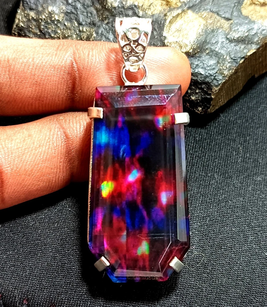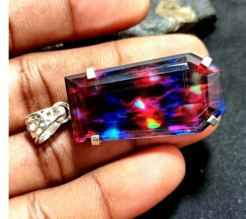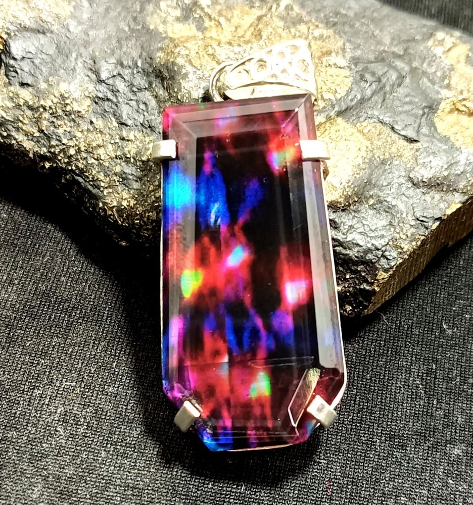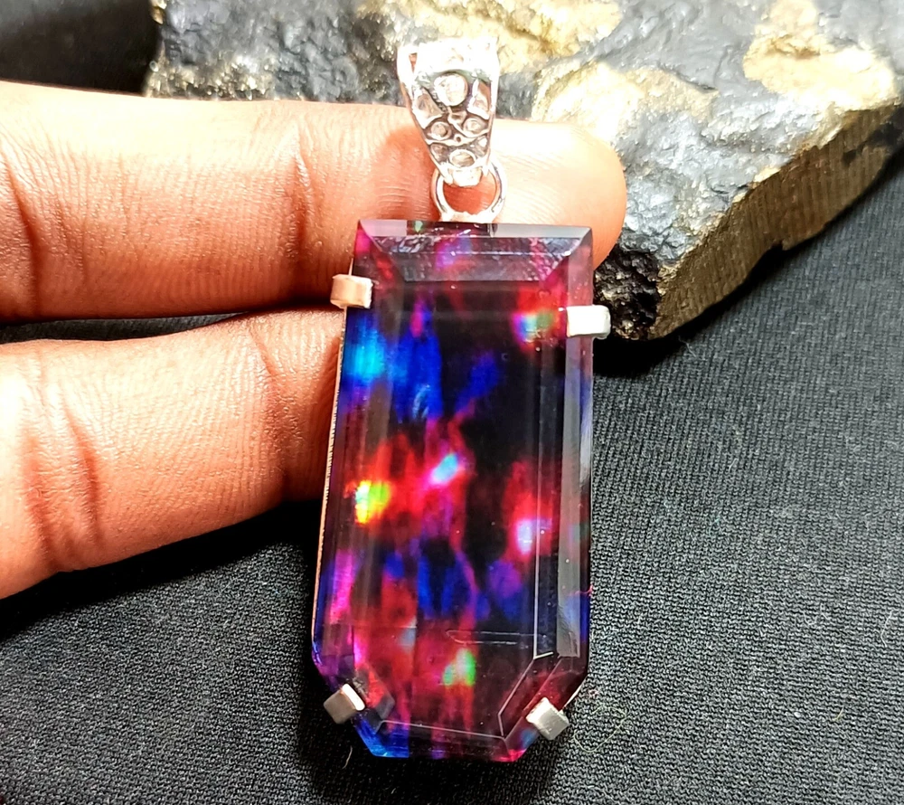 Certified 90.95Ct Natural Ammolite 925 Silver Emerald Cut Pendant Loose Gemstone