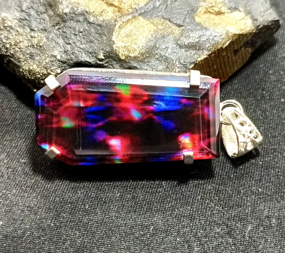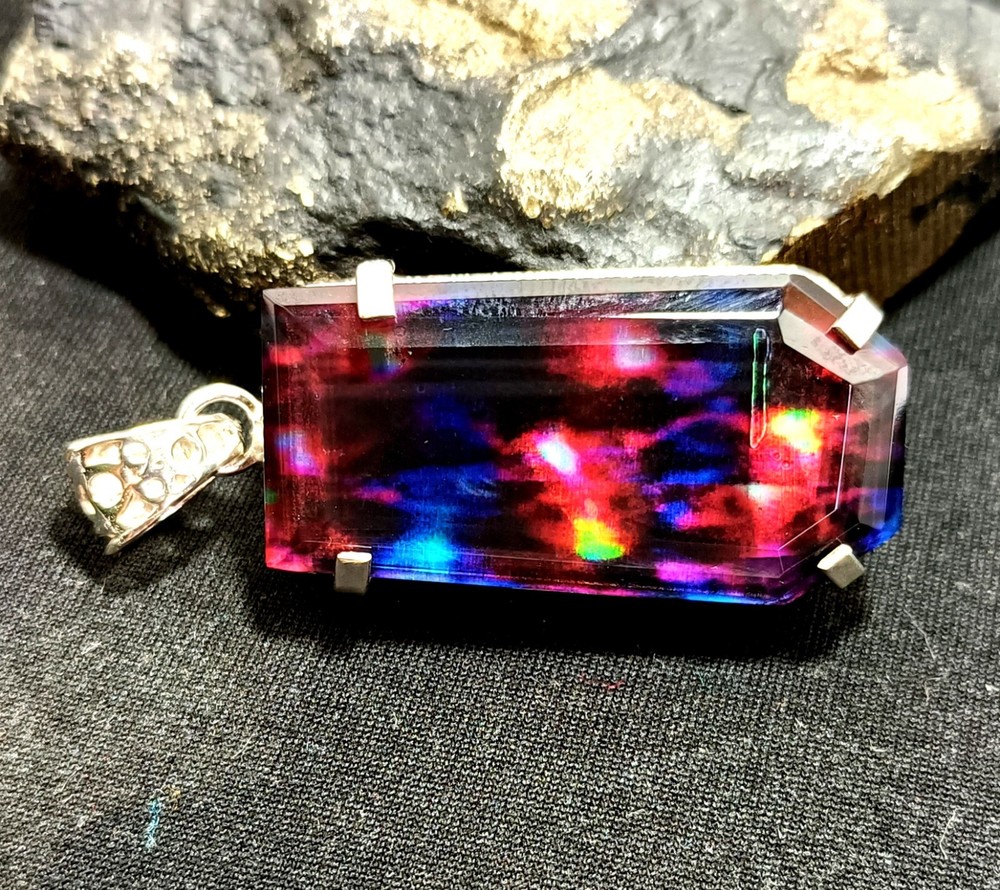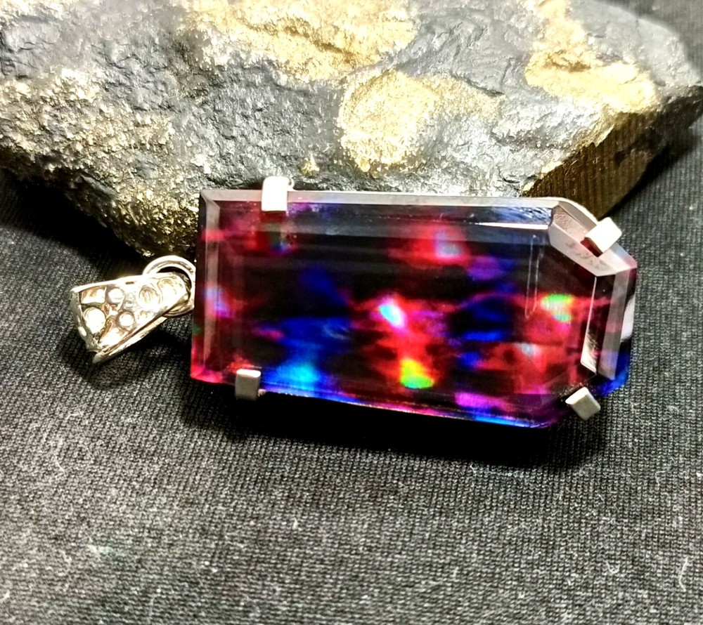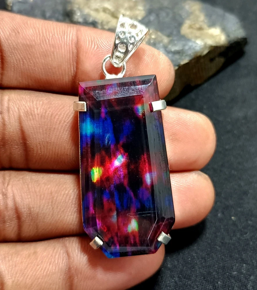 Certified 90.95Ct Natural Ammolite 925 Silver Emerald Cut Pendant Loose Gemstone