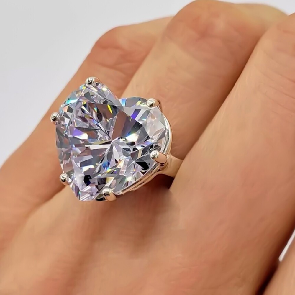 $ 125.46.30 Ct Heart Cut White Diamond Solitaire Ring 925 Silver Festive Gift