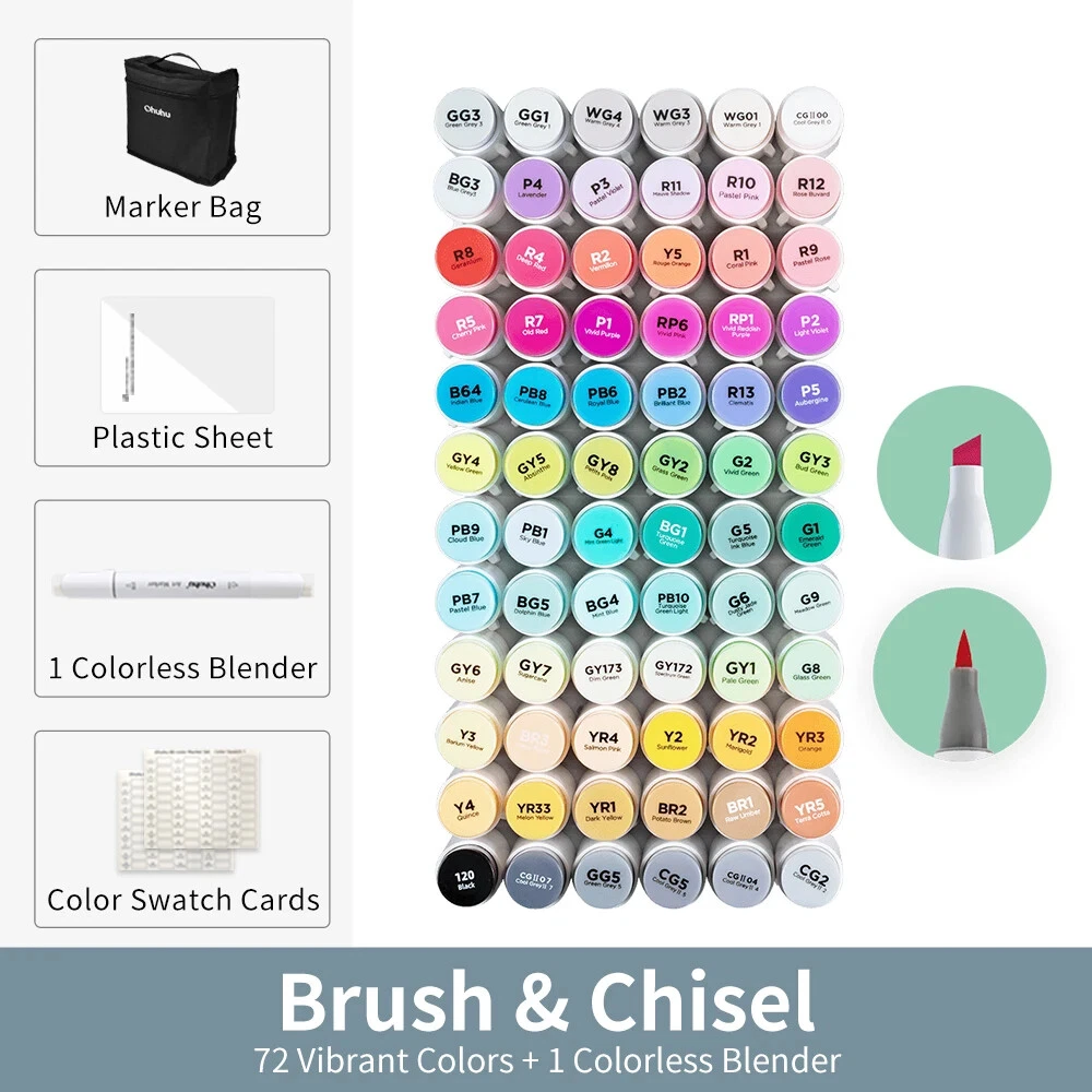 Main Featrues 【Honolulu Series】BRUSH & CHISEL , DOUBLE-TIP, DOUBLE THE FUN Widen your artistic horizons with the dual-tip marker design! Choose the brush tip for sweeping, calligraphic strokes or quickly color in large areas with the wide chisel tip. What's more, now Ohuhu replacement brush tips is available, so you can easily replace the worn-out tips to ensure consistent and precise lines whenever you create. The only limit is your imagination 【Honolulu B Series】BRUSH & FINE , DOUBLE-TIP, DOUBLE THE FUN Widen your artistic horizons with the dual-tip marker design! Choose the brush tip for sweeping, calligraphic strokes or the fine tip for details. What's more, now Ohuhu replacement brush tips is available, so you can easily replace the worn-out tips to ensure consistent and precise lines whenever you create. The only limit is your imagination REFILLABLE INK FOR A LIFETIME OF CREATIVITY With 51 Ohuhu popular colors available for refills now and more on the way, your creativity knows no bounds. Enjoy a wide range of hues and keep your markers going for years to come. Whether you're exploring the rich colors of Honolulu, Oahu, the Kaala, or the bold hues of Molokai Series, they are refillable now. Switch between sets seamlessly and unlock endless artistic possibilities. Elevate your artwork with Ohuhu markers, designed for a lifetime of creativity SEAMLESSLY BLENDING Say goodbye to unsightly splotches and uneven coloring. Our high-quality ink seamlessly blends to create beautiful, professional-grade artwork, perfect for both beginners and experienced artists; Also, no more frustrating smudges or wet ink ruining your work. Our alcohol-based ink dries quickly, ensuring that your art is always clean, crisp, smudge-free, and ready to display 72 VIBRANT COLORS + 1 COLORLESS BLENDER The rainbow is at your fingertips - choose from 72 brilliant colors and bring your ideas to life. The color spectrum is yours to explore with 72 brilliant shades to choose from, plus a colorless blender for better blending effects. From coloring books to professional masterpieces, our brush markers will breathe life into your artwork EASY IDENTIFICATION, ORGANIZATION & PORTABILITY Don't waste time searching for the perfect color. Our markers come with color-coded caps to keep you organized and efficient. Plus, the free carrying case makes these markers perfect for any coloring adventure or as a thoughtful gift for any artist Product Description