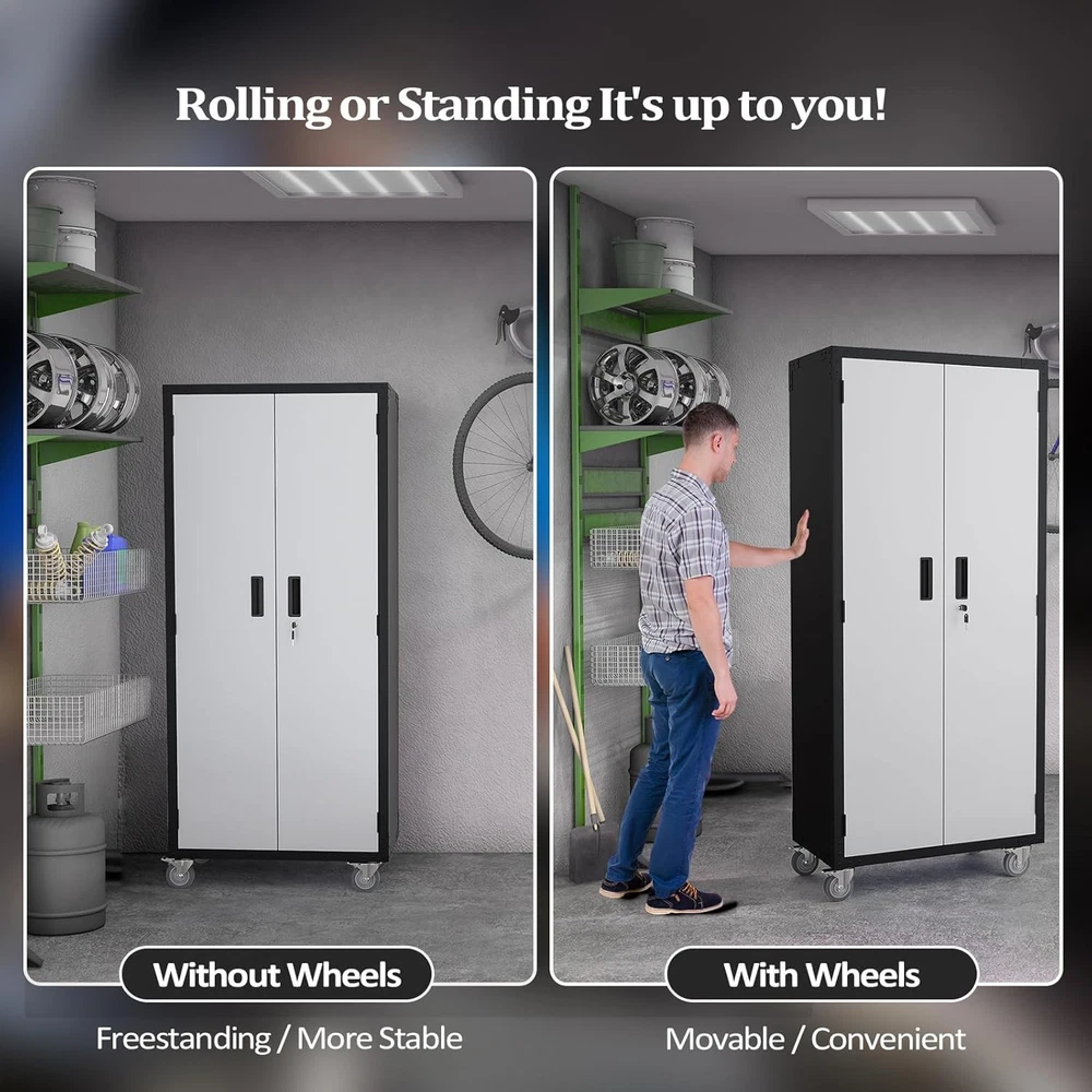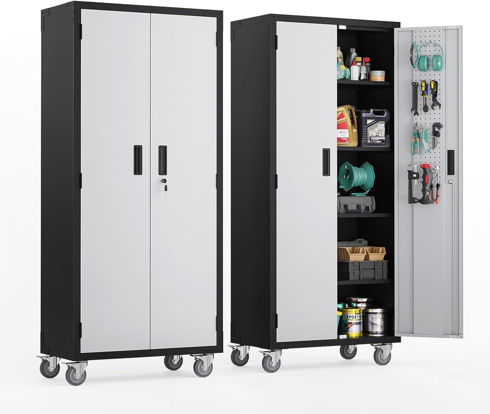 This cabinet is a game-changer for organizing my garage! The sturdy metal build feels durable, and the adjustable shelves make it super versatile. Love the pegboards for hanging tools and the locking doors keep everything secure. It fits perfectly in tight spaces but holds way more than expected. The sleek silver finish looks great and blends well with any decor. Highly recommend for anyone needing extra storage without sacrificing style!