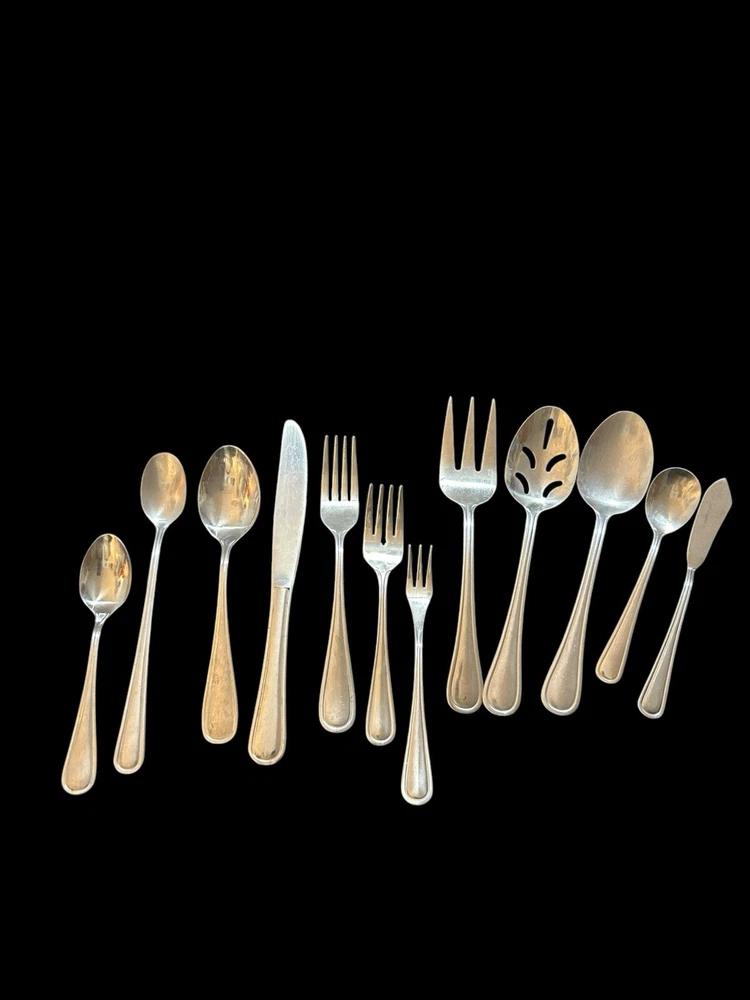 Type: Set Style: Modern Number of Items in Set: 72 Color: Silver Set Includes: Fork, Knife, Serving Set, Spoon Brand: Gibson