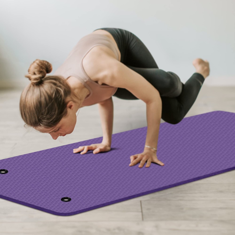 Extra thick for comfort and balance: Firm 10mm extra thick fitness mat w/ mat strap alleviates stress on pressure points such as joints, hips, hands, and knees. 72.8" X 31.5" extra wide. Our high-density, non-slip performance top provides unmatched durability and cushion. Mats are crafted from premium eco-friendly, non-toxic materials to create the perfect combination of heavy duty toughness, comfort and stability. Hangable and easy to clean: It is easy to keep clean and fresh for your next workout. Use a mix of gentle soap and water, wipe clean, and hang it to dry. Do not submerge. Non-slip surface:Unique wave shape non-slip material keeps you steady and balanced while staying securely on the floor, preventing injury and allowing you to focus on your practice or workout. Durability: yoga mat, thick, durable material allows for everyday use, regardless of the intensity of your exercise. Ideal for your home or studio practice.