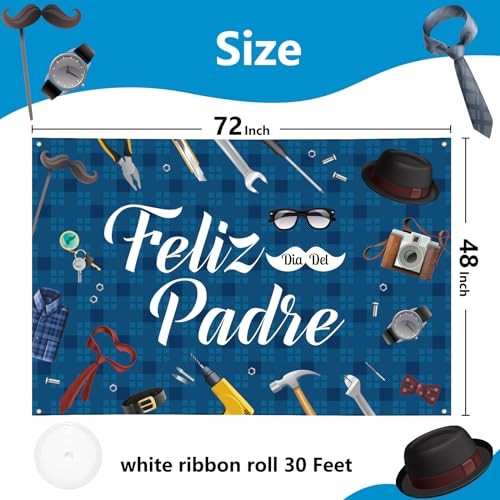 Return Policy Fast Delivery Trusted seller Large Fathers Day Banner Decorations 72" x 48" Feliz Día Del Padre Backdrop Spanish Tie Tool Party Supplies Gifts Photography Background for Indoor Outdoor Garden,Yard,Home Decor Product Description Premium Quality: This happy fathers day backdrop is made of high quality fabric polyester, wear-resistant and wrinkle resistant, ensure it can be used for a long time. Great Material: Our fathers day banner is double-stitched, has 4 high quality brass grommets to provide lasting strength, not easy to be torn so that it can be hung both indoor and outdoor. Vivid Color: This fathers day decoration has an interesting design with Feliz dia del padre letters, full of holiday atmosp. Using advanced printing technology that the backdrop can be seen brightly and clearly. Widely Use: This father's day banner is a great home decor. It's perfect for fathers day party decoration. You can hang it on the wall, garden, yard, porch, fence etc to celebrate the holiday as a photo prop. Customer Service: Please fell free to contact us if you have any dissatisfaction about our product. We will reply within 24 hours! Shipping Returns Payment Shipping Shipping is FREE to all addresses other than APO/PO boxes in the lower 48 states. All our stock ships from US-based warehouses. Shipped via USPS or UPS (depending on location and package weight) Unless stated otherwise, all orders will ship within 24-72 hours of your payment being processed. Check our feedback to see the great reviews of FAST shipping we offer. Returns Seller does not accept returns Payment We currently accept payment via eBay managed payments only. Once payment is cleared, we will dispatch your shipment within 1-3 business days. Please refer to the "Shipping" tab for more information regarding shipping speed to your destination.