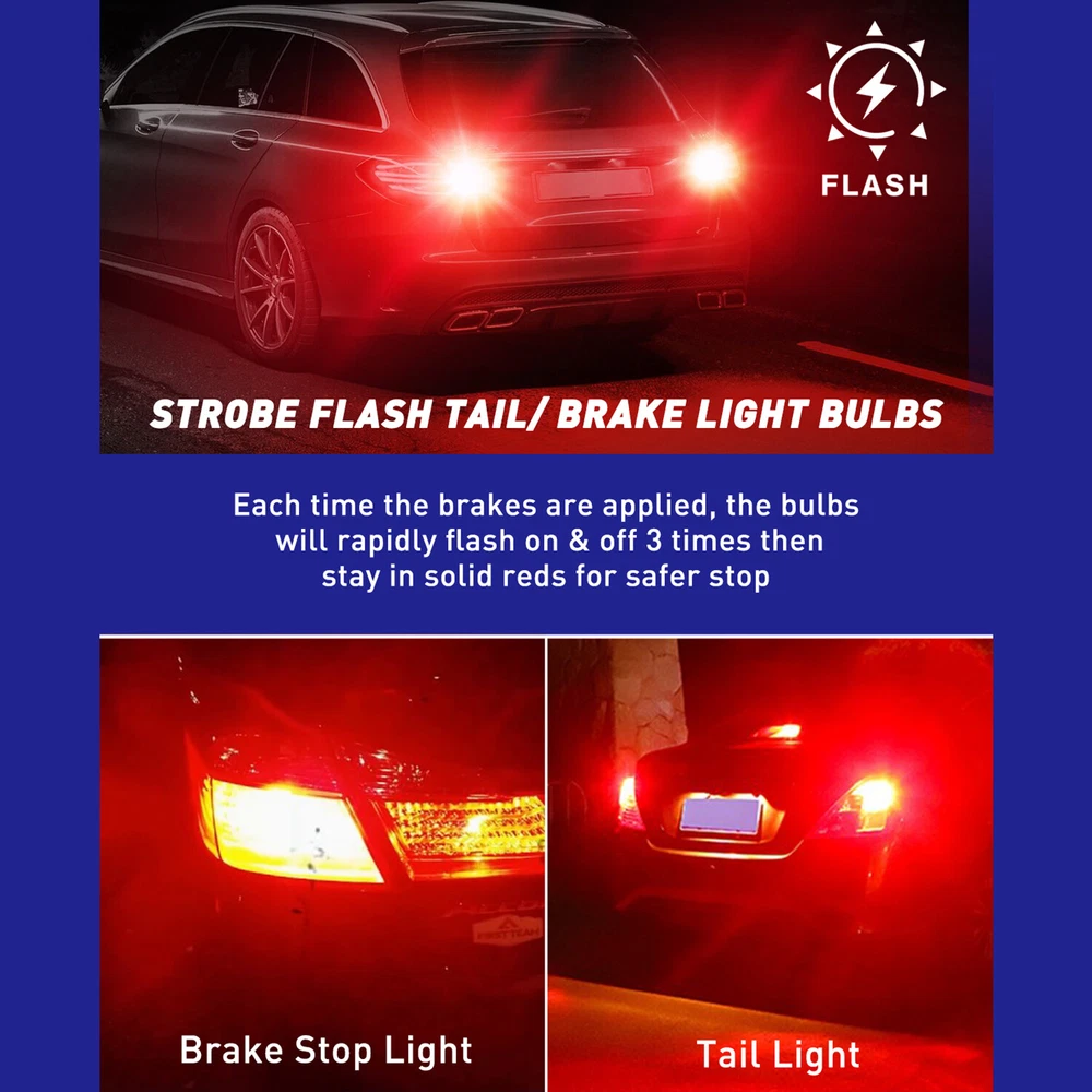 7443 LED Strobe Flashing Blinking Brake Tail Light Parking Safety Warning Bulb