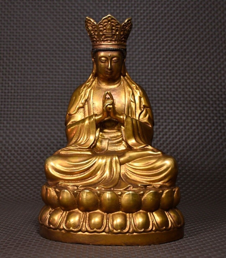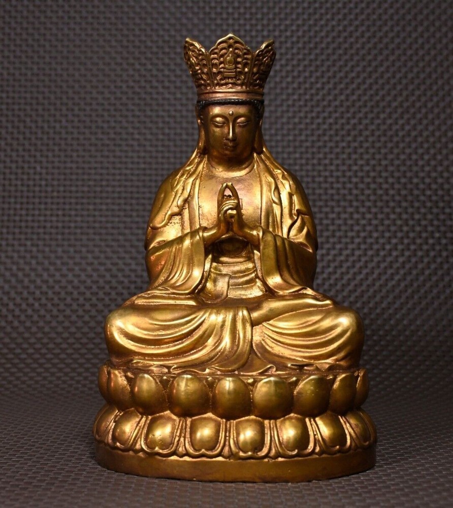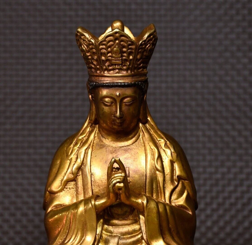 $ 88.2712.6" China old Tibetan Buddhism temple Bronze gilt Guanyin Bodhisattva statue