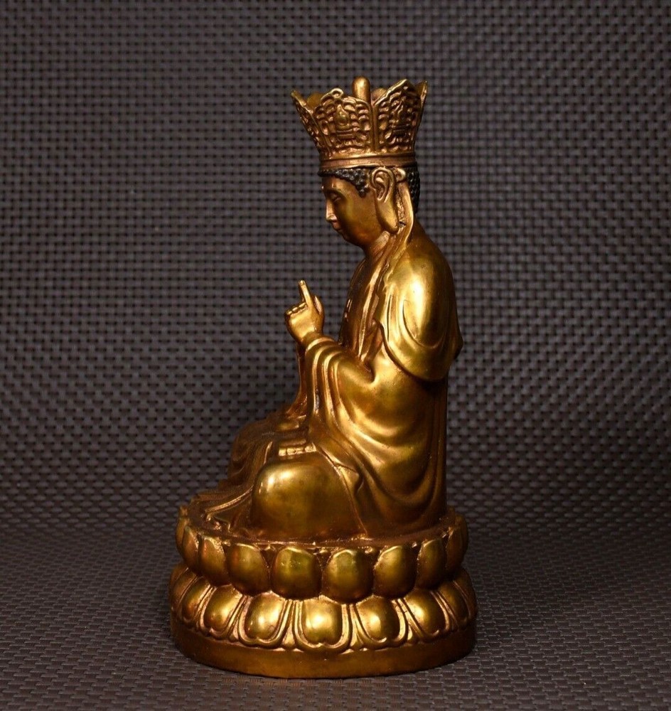 $ 88.78" Old Antique Tibet Tibetan Buddhism temple Bronze gilt Amitabha Buddha statue