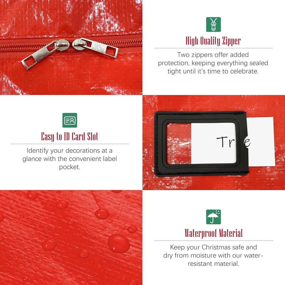 Noel ağacınızı dayanıklı, ekstra büyük 7.5 Ft Noel Ağacı Saklama Çantamızda güvenle saklayın. Sağlam, yırtılmaya dayanıklı polietilen brandadan üretilen bu çanta, yapay ağacınızı tozdan, kirden ve nemden korumak ve gelecek yılın şenlikli süslemeleri için bozulmadan kalmasını sağlamak için tasarlanmıştır. Su geçirmez malzeme elementleri dışarıda tutarken, düz kırmızı renk depolama çözümlerinize bir tutam tatil sıcaklığı katar. 48 inç uzunluğunda, 15 inç genişliğinde ve 20 inç yüksekliğinde olan çanta, benzer boyutlardaki çoğu yapay Noel ağacına uyar. Dikdörtgen şekli ve güçlü fermuarlı kapatması güvenli bir uyum sağlayarak onu tatil planlaması için olmazsa olmaz bir aksesuar haline getirir. Çanta ayrıca sadece 14.4 ons ağırlığında olup taşınmasını ve saklanmasını kolaylaştırır.