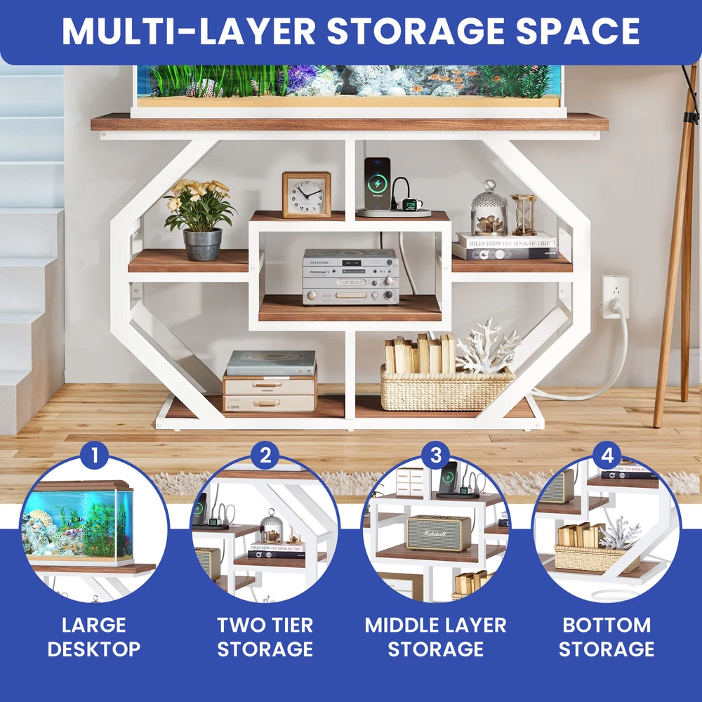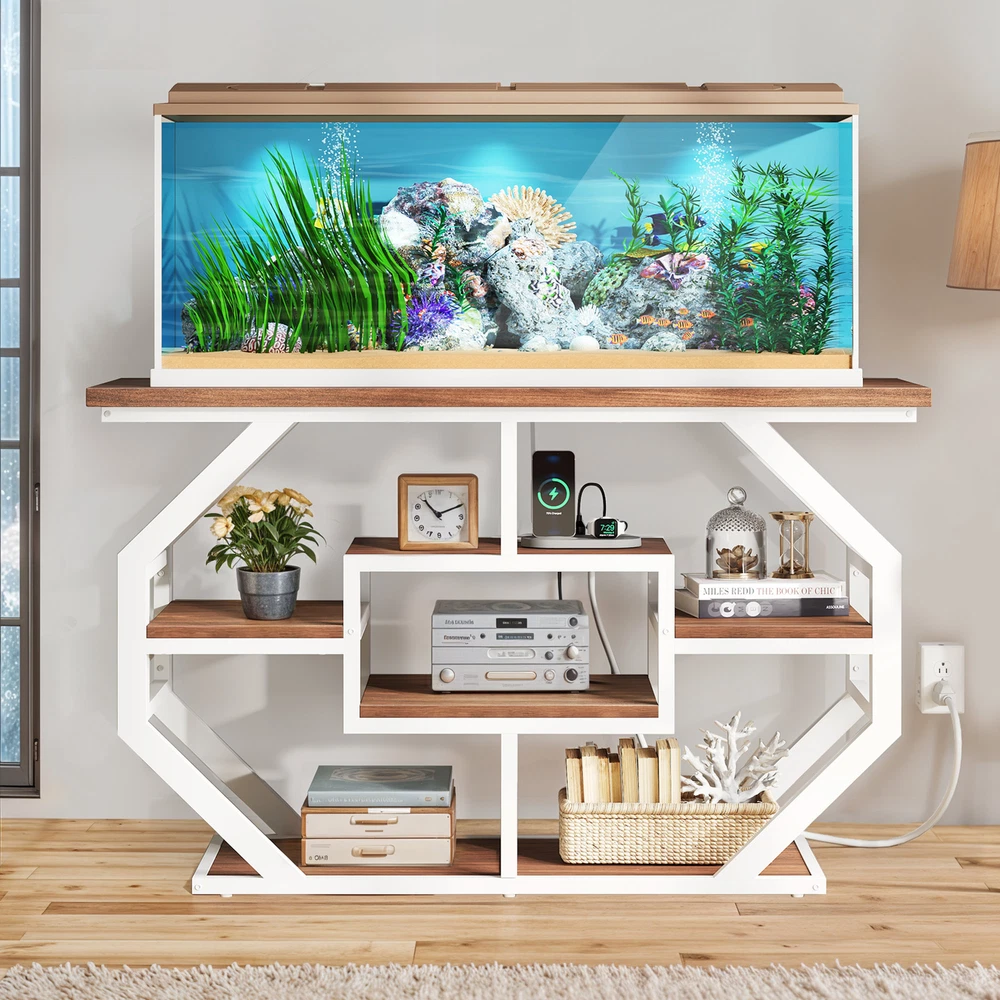 75 Gallon Aquarium & Terrarium Stand Fish Tank Cabinet Storage with Power Outlet Product Description NOTE: The aquarium/fish tank is not included. Professional installation is highly recommended. Description: 1. Material: P2 Particle Board + Metal 2. Color: Brown and White 3. Special Design: Stylish Design with Black Marble Finish, Power Outlets, Sturdy Metal Frame, Easy to Clean, Multi-Layered Storage, Double as TV Stand 4. Suitable for: Aquarium Stand/Fish Tank Cabinet, TV Stand 5. Room Type: Hallway, Living Room Features: 1. Elegant and Sophisticated Design: The combination of brown wood and white metal creates a luxurious and sophisticated aesthetic. This fish cabinet is a beautiful addition to any home, elevating your living space with a touch of elegance. 2. Unmatched Strength and Durability: Crafted with high-quality brown wood and white iron pipe, this fish cabinet offers exceptional durability and stability. The sturdy construction ensures a secure and reliable foundation for your aquarium, supporting up to 860 lbs. 3. Convenient Power Management: The built-in power strip with three outlets allows you to easily connect and power your aquarium equipment. The 2-meter long cord provides flexibility in placement and cord management, ensuring a neat and organized setup. 4. Ample Storage Space: The spacious design provides plenty of room for your aquarium equipment and accessories. The open shelf and cabinet offer ample storage space, allowing you to keep your setup organized and clutter-free. Dimensions: 1. Overall Dimensions: 51.6" L x 18.9" W x 30.5" H 2. Item Weight: 67.24 lbs. 3. Maximum Weight: 860 lbs. Package Included: 1. 1x Aquarium Stand/Fish Tank Cabinet 2. 1x Accessory Kit 3. 1x Instruction Manual Shipping 1. Normally the item will be dispatched within 1 business day if payment is cleared before 12pm PST. 2. Please verify the correct shipping address in your PayPal account before making the payment. We only dispatch the item to the address that is sent to us at the time of checkout. 3. We don't ship to Hawaii, Alaska, Puerto Rico, APO/FPO/PO Boxes. 4. We don't provide local pick-up service. 5. Normally we will use USPS, UPS, FedEx & LTL to dispatch items. Payment 1. We accept PayPal and credit card. 2. We will ship to the confirmed Paypal shipping address that is provided with the payment only. Return 1. 30 days Money Back Guarantee. 2. Please contact our customer service to receive a RMA form first if want to return the item. 3. All returned items MUST in new condition with the original package. Contact If has any problem, please contact us by sending an ebay message. Our customer service will resolve the problem as soon as possible. On Oct 17, 2024 at 05:43:46 PDT, seller added the following information: On Dec 18, 2024 at 22:46:37 PST, seller added the following information: