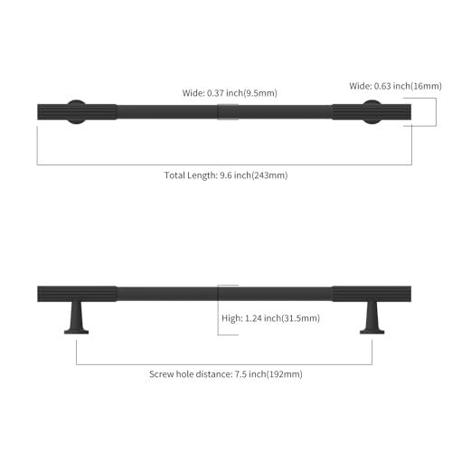 7.5 Inch(192mm) Cabinet pulls Kitchen 7.5" Hole Center Matte Black 10 Pack