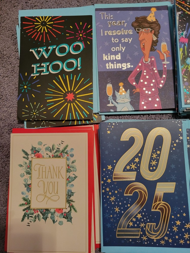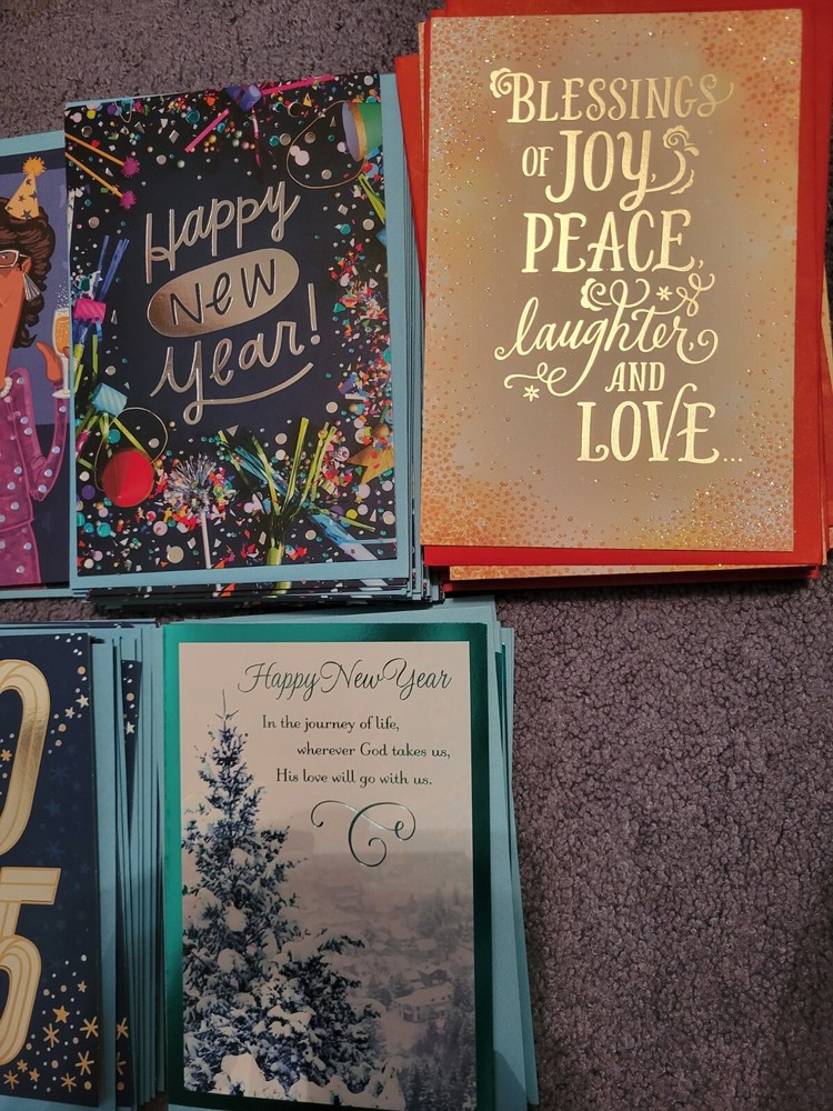 New Years Cards Mix of 75 New Cards Starting from the top going left to right there is 6/3/18/4 total Cards Starting at the bottom going left to right there is 20/9/15 total Cards