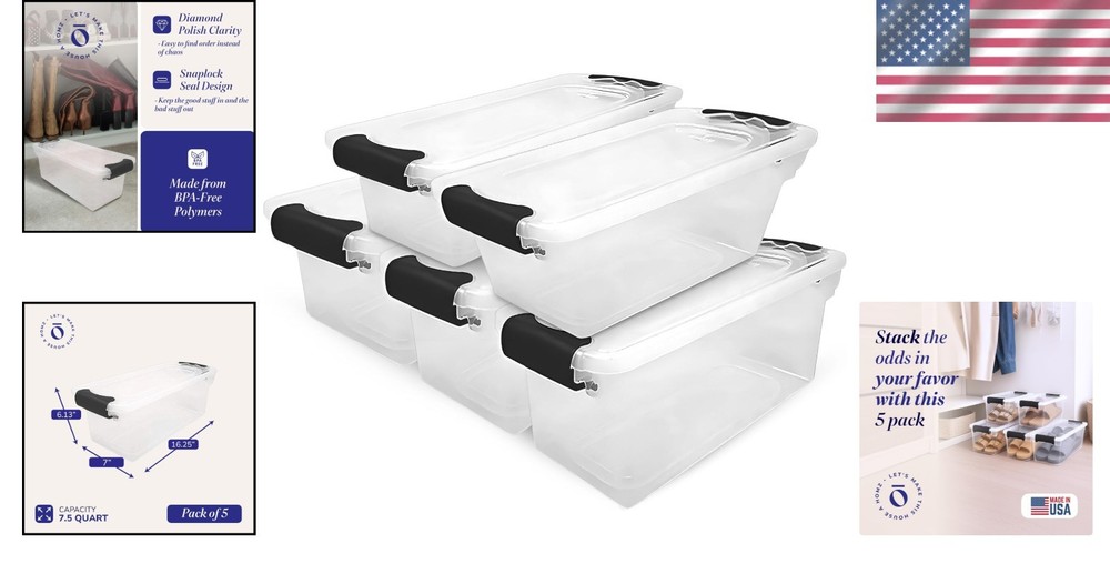 Modern 7.5 Quart Clear Plastic Storage Bins - Set of 5 with Latching Lids ‹ › ‹ › ‹ › ‹ › ‹ › ‹ › ‹ › ‹ › ‹ › ‹ › ‹ › Modern 7.5 Quart Clear Plastic Storage Bins - Set of 5 Welcome to the world of organization with our stylish and practical Set of 5 Modern 7.5 Quart Clear Plastic Storage Bins . Designed to elevate your home aesthetics while providing ever-so-reliable functionality. Key Features: Generous 7.5-quart capacity – Perfect for storing décor, art supplies, toys, and more. Clear plastic design – Effortlessly identify contents without opening each bin. Secure latching lid – Tight-fitting lids with comfortable latching handles provide a secure closure against dirt, insects, and moisture. Stackable design – Maximizes vertical space while ensuring easy access to your items, ideal for closets, garages, and under beds. Eco-friendly choice – Made from 90% recycled plastic, combining durability with sustainability. Benefits: Versatile Storage : Ideal for any space - home, office, or classroom. Organized Living : Keeps your belongings neat and readily accessible. Built to Last : Durable and heavy-duty, these bins withstand daily use. Space Optimization : Stackable design ensures ease of use and visibility. Conscious Choice : A sustainable option that supports eco-friendly practices. Why Choose Our Storage Bins? Transform your spaces with our Modern 7.5 Quart Clear Plastic Storage Bins . Whether you are decluttering your home or organizing your workspace, these versatile bins will meet your needs effortlessly. With a focus on quality, genuine functionality, and sustainability, we are committed to helping you keep your life in order while contributing positively to the planet. Don’t settle for less; embrace organized living with our storage solutions. Order your Set of 5 today and make your home a ! Shipping Free & Fast Shipping - We offer free shipping to most of the USA with a normal delivery time of 3-7 days. However, due to the current situation, additional delivery time (up to 3 weeks) may be required for some items. Alternative Carriers - We may use alternative carriers (e.g. USPS, FedEx, UPS, etc.) to ensure your package arrives safely and on time. Due to the use of multiple carriers, we are unable to provide a tracking number automatically. Handling Time - Orders are processed and shipped within 1-2 business days of receiving cleared payment. Shipping Restrictions - Shipping to Alaska, Hawaii, Puerto Rico, Guam, and other US territories may incur shipping charges or delivery restrictions. Please contact us before ordering, or your order can be refunded/cancelled. State Restrictions - There may be restrictions based on your state of purchase. For example, certain items may not be shipped to California due to state regulations. Contact for Tracking Updates - If you require tracking updates or have any concerns about the delivery of your order, please feel free to contact us, and we will be happy to assist you. Return 30-Day Hassle-Free Returns - We want you to be completely satisfied with your purchase. If you are not, you can return the item within 30 days of receiving it for a full refund or exchange. Easy Return Process - To start a return, simply contact us and we will provide you with a prepaid return shipping label and detailed instructions. Restocking Fee - There are no restocking fees for returns. However, the buyer is responsible for return shipping costs if the return is not due to a seller's error. Refund Processing Time - Refunds will be processed within 5 business days of receiving the returned item in its condition. Payment We accept all major credit cards, PayPal, and Apple Pay for your convenience. Your payment information is secure and encrypted to ensure a safe and seamless transaction. Please complete your payment within 3 days of purchase to avoid any delays in shipping. Feedback Your feedback is extremely important to us. We strive to provide the best products and customer service possible. If you are satisfied with your purchase, please take a moment to leave us a positive review. If you have any concerns or issues with your order, please contact us before leaving negative feedback. We are committed to resolving any problems and ensuring your satisfaction. Contact Us If you have any questions or concerns, please feel free to out to our customer support team. You can contact us through the eBay messaging system. We are available Monday to Friday, 9:00 am to 5:00 pm EST, and we will do our best to respond to your inquiry within 24 hours. Buy it now and enjoy a pleasant shopping experience! Unit Quantity: 5.0 count Material: Plastic,Resin Features: Lidded,Stackable,Snap Closure Mounting: Free Standing Item Height: Storage Bins Item Length: Storage Bins Item Width: Storage Bins Type: Storage Bin Capacity: 7.5 Quarts Item Weight: Less Than 2 lb Item Depth: Less Than 5 in Number of Items in Set: Five-Piece Color: Gray Number in Pack: 5 Number of Compartments: 1 Shape: Square Pattern: Solid Finish: Glossy Style: Modern