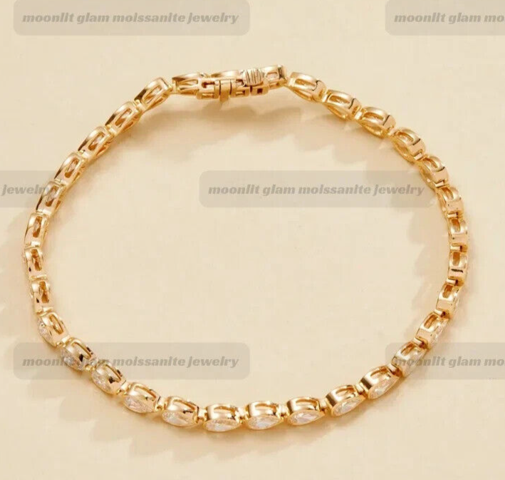 $ 8.1914K Yellow Gold Plated Tennis Bracelet with 1Ct Lab Sapphire for Women