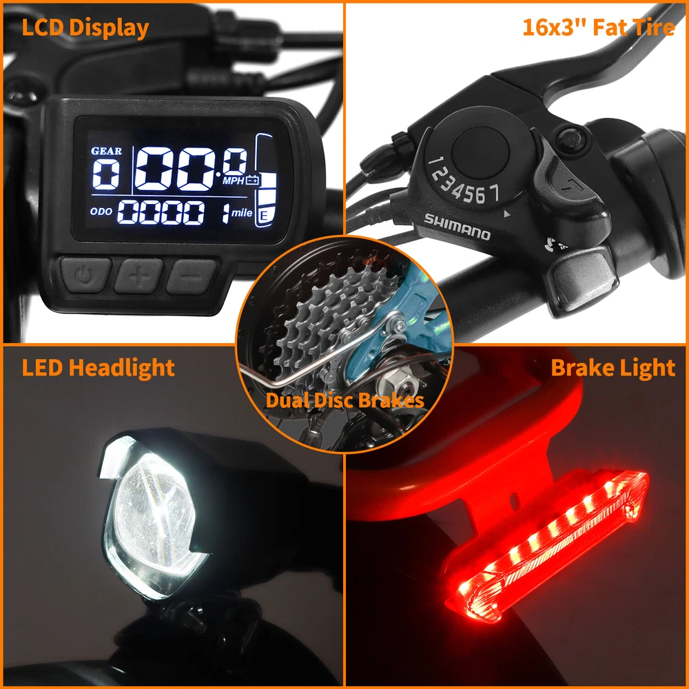 E-Bike 16" Electric Bike for Adult Fat Tire Folding Bicycle -Commuter Ebike New