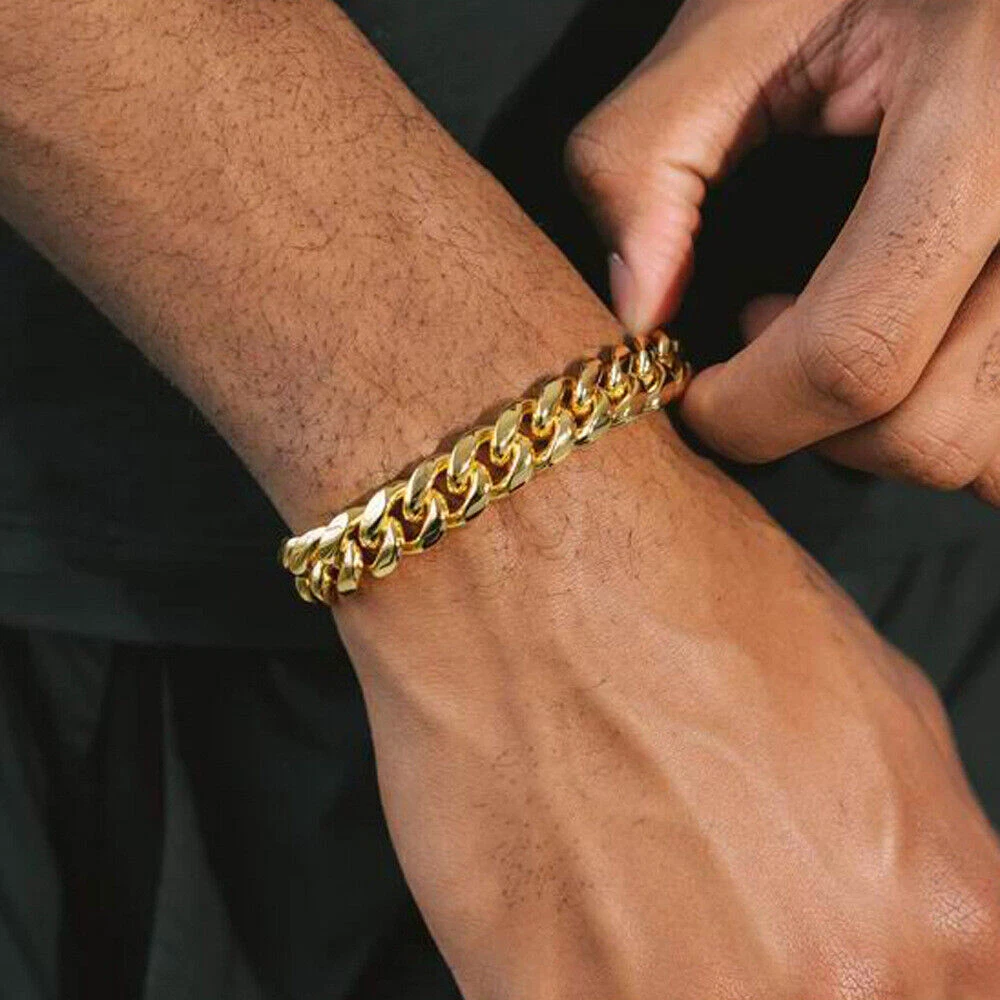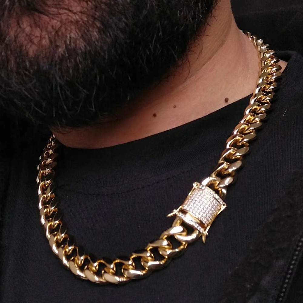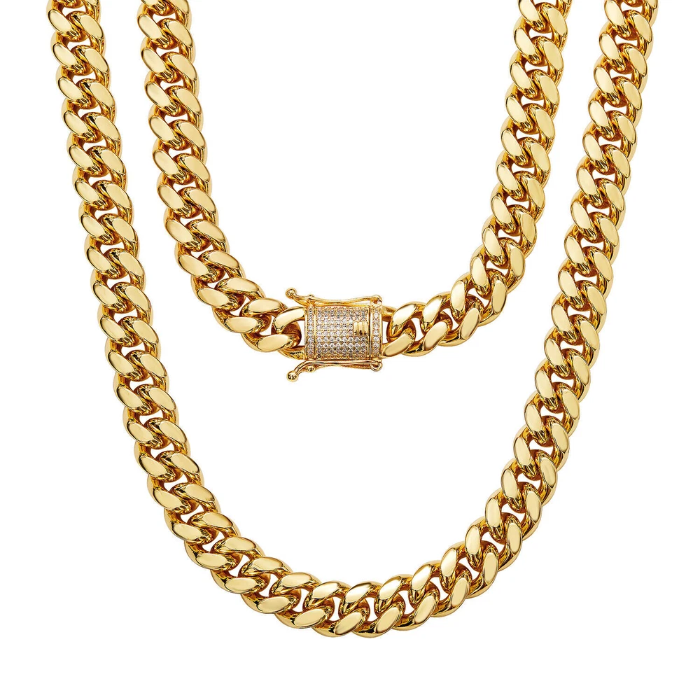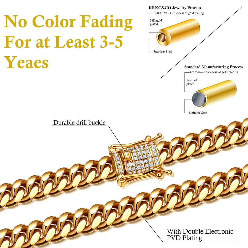 $ 7.9418K Gold Stainless Steel Cuban Link Chain for Men 7.5-30 Inch