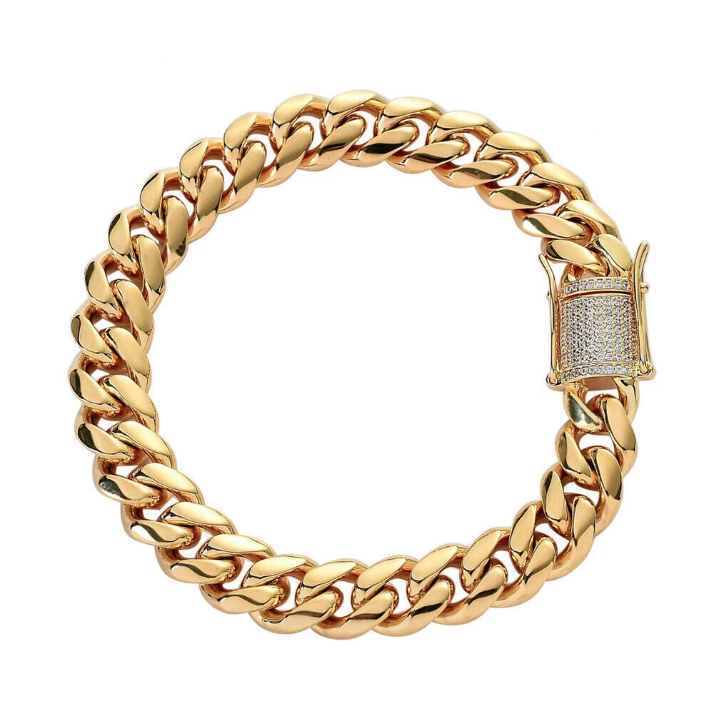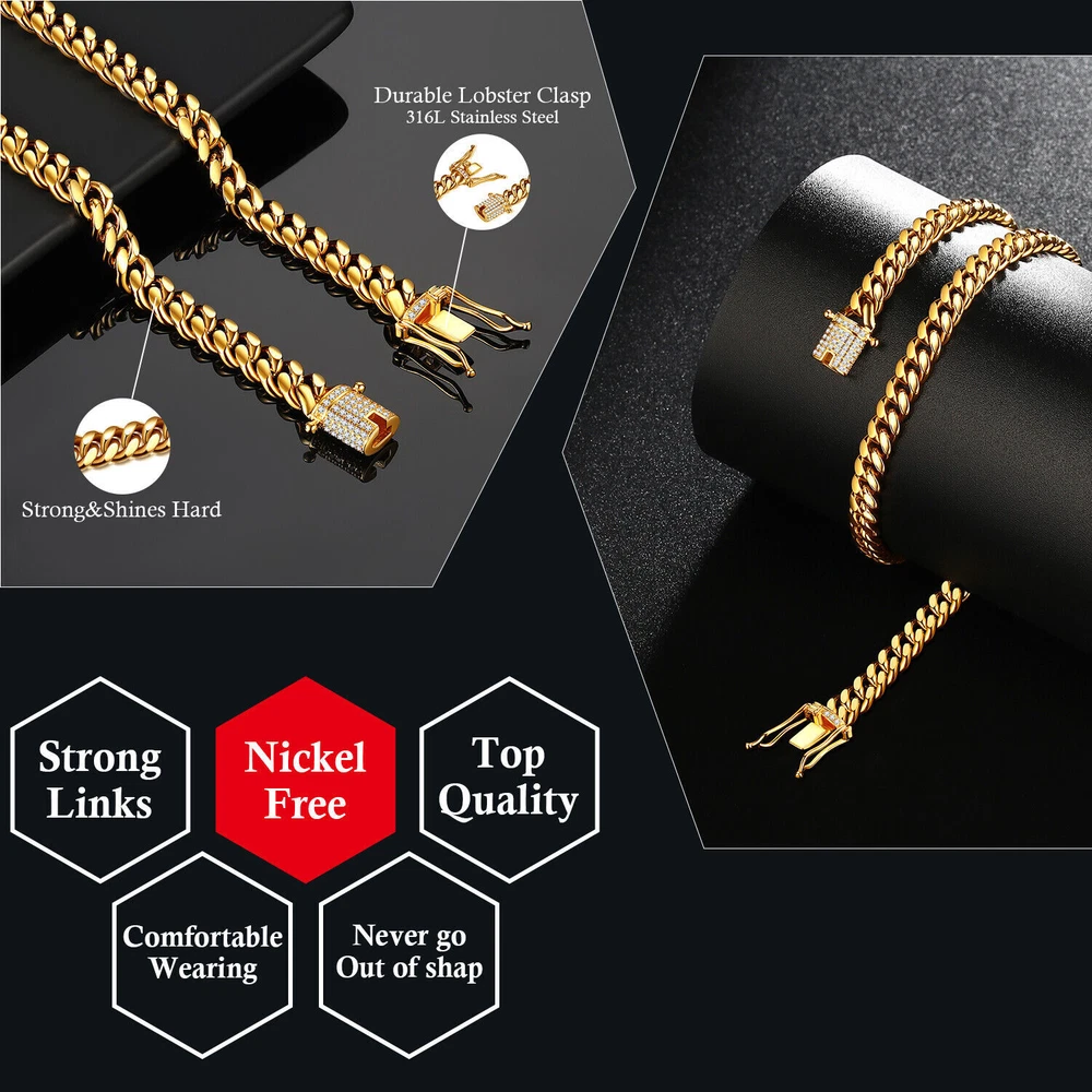 Stainless Steel 7.5-30 Inch Cuban Link Chain 18K Gold Plated Necklace