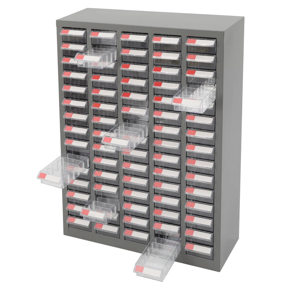 This tool cabinet is a game-changer for organizing small parts! The 75 drawers are perfect for bolts, nuts, and other hardware—everything stays neatly sorted and easy to find. The sturdy construction holds up well under heavy use, and the sleek design fits right into any garage, office, or workshop. No more digging through messy bins—this keeps everything in place and saves so much time. Highly recommend for anyone who needs smart, efficient storage!