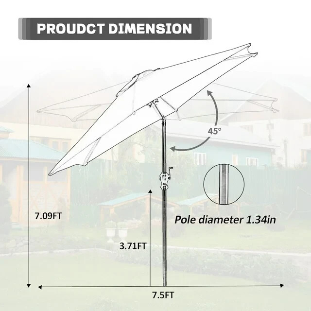 -Brand New - Never Used - Questions: Feel free to ask any Questions - BOX: Never Opened - DESCRIPTION:Autlaycil 7.5 ft patio umbrella is the perfect answer for outside! This outdoor umbrella has excellent quality and is equipped with a convenient crank and tilt system. The market umbrella is made of high-quality steel and waterproof fabric, it can withstand repeated use. The table umbrella is easy to carry when you are hiking and camping, and it is an essential partner for your outdoor leisure and travel.6 Sturdy Ribs: To withstand heavy wind or make it more durable in hot weather, we made it with all-iron umbrella bones and 6 sturdy ribs. Therefore, our patio umbrella can withstand repeated use. Easy to use: With a crank and a push button, you can easily use the outdoor umbrella to get a perfect shade. It is suitable for patio decor, bistro tables, cafe-style seating, and lounge areas. Sun & Rain-Resistant: Polyester fabric features fade-resistant, water repellent, and sun protection. Protect you from the potential long-term effects of the sun and rain with our 7.5 ft Patio Umbrella. Durability: The sturdy iron ribs and center pole add strength and durability to this outdoor umbrella.- OFFERS: Reasonable offers are considered, LOWBALLERS, Best price and Lowest askers will be ignored - all sales final/no refunds/ no exchanges/ no returns - Disclaimer: I do not own the brand's trademarks, logos, pictures, or products posted. I do not intend to infringe on copyright. I find such content available on the internet. Contents are considered fair use. Autlaycil 7.5FT Patio Umbrellas with Push Button Tilt and Crank, Coffee