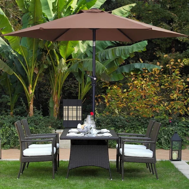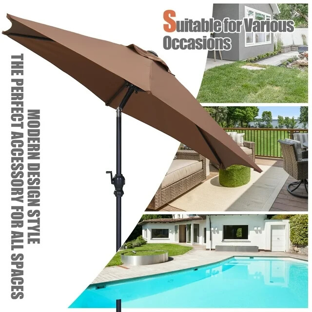 7.5FT Patio Umbrella with Push Button Tilt and Crank by Autlaycil in Coffee