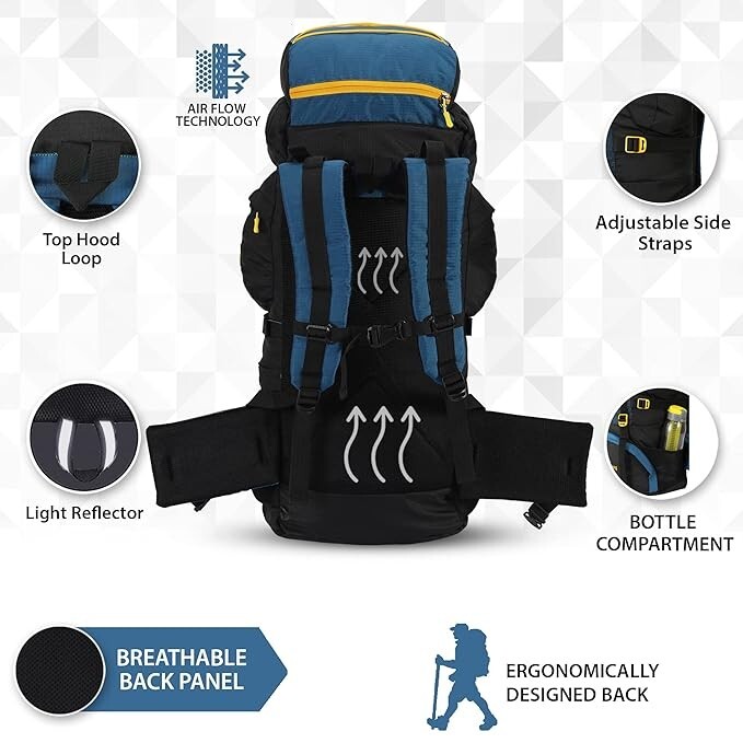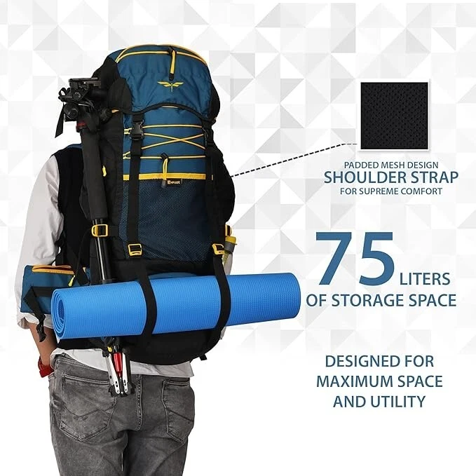Impulse 75L Rucksack Travel Backpack for Men | Hiking, Trekking, and Camping Bag | Large Capacity Tourist Bag for Travel (Thames) Description: Embark on your next adventure with the Impulse 75L Rucksack Travel Backpack , designed for the modern traveler and outdoor enthusiast. Whether you’re hiking, trekking, camping, or exploring new destinations, this spacious and durable bag is engineered to carry all your gear with ease. With a 75-liter capacity, this backpack offers ample storage space for everything you need while keeping you organized and comfortable during your travels. Key Features: Generous 75L Capacity : With a spacious 75-liter capacity, this travel rucksack offers plenty of room to store clothes, camping gear, trekking equipment, and other essentials for your outdoor adventures. Versatile Design : Ideal for hiking, trekking, camping, and traveling, the Impulse Rucksack is a versatile companion for a wide range of outdoor activities. Perfect for long trips, weekend getaways, and extreme expeditions. Durable & Water-Resistant : Made from high-quality, water-resistant materials, this bag is designed to withstand tough weather conditions and rough environments, keeping your belongings safe and dry. Ergonomic & Comfortable Fit : The backpack features padded shoulder straps and a breathable back panel for added comfort and support. The adjustable straps ensure a secure and personalized fit, reducing strain during long treks or extended use. Multiple Compartments : Equipped with several compartments, including side pockets, zippered sections, and a large main compartment, this bag keeps your gear organized and easily accessible. It also includes a top-loading main compartment for efficient packing. Heavy-Duty Zippers & Buckles : Built with sturdy zippers and secure buckles to ensure your items stay safely stored throughout your journey. Stylish Thames Design : With its sleek and functional design, the Impulse Rucksack combines durability with a modern aesthetic, making it both practical and stylish for outdoor excursions. Breathable Mesh & Ventilation : The back panel features a breathable mesh design to enhance airflow, preventing sweat buildup and keeping you cool on your hikes or travels. Why Choose Impulse? Impulse is committed to delivering high-quality, durable outdoor gear designed for both functionality and style. Whether you're an avid hiker, camper, or frequent traveler, the Impulse 75L Rucksack is built to keep up with your adventures, offering both comfort and reliability. Specifications: Material : High-quality water-resistant fabric Capacity : 75L Dimensions : Large and spacious for optimal packing (please refer to product images for detailed sizing) Straps : Adjustable padded shoulder straps, sternum strap, and waist belt for comfort Color : Thames (Stylish and versatile) Features : Multiple compartments, heavy-duty zippers, breathable back panel, and ergonomic design Perfect for Adventure Seekers Whether you’re planning a long trek through the mountains or a weekend camping trip, the Impulse 75L Rucksack is your ultimate travel companion. With its ample storage, comfortable design, and durable build, this bag is ready to take on any adventure.