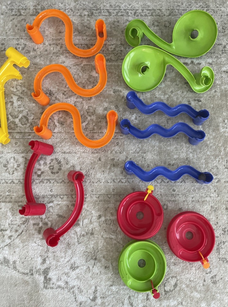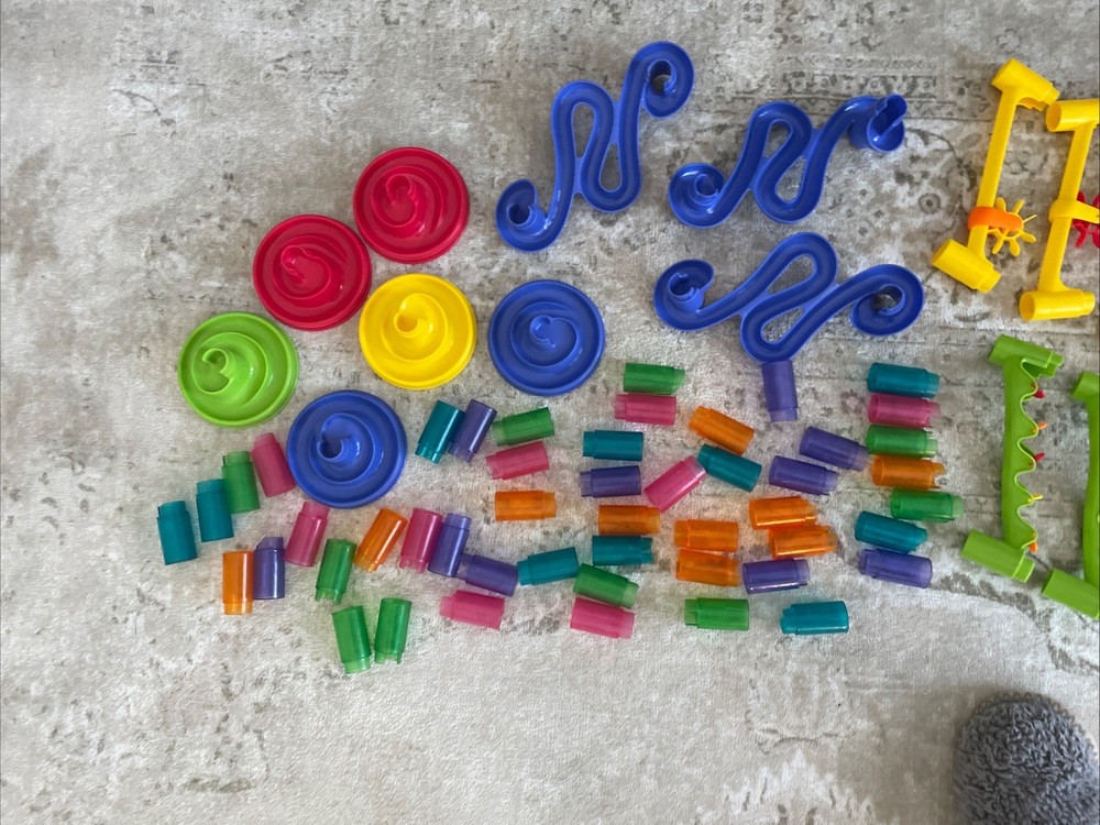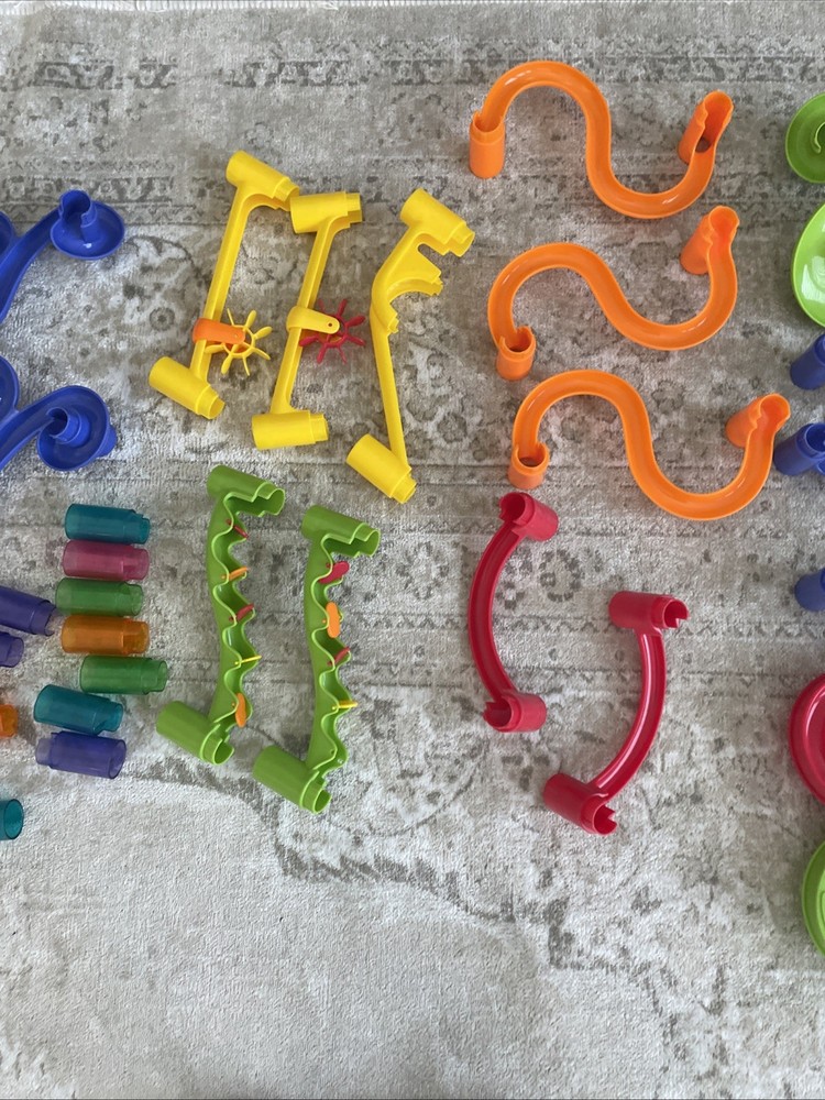Fun summer indoor play! 75 Pieces !! Imaginarium Deluxe Marble Run Race Discovery ToysRUs Large Nice!! The product is a large lot of 75 pieces from the Imaginarium Deluxe Marble Run Race set by Discovery Toys. This multicolor plastic marble run set features a STEM theme and is part of the Education product line. It is designed for ages 10 and up and includes a variety of pieces to create unique marble race tracks. This bulk lot does not come with any packaging but provides endless opportunities for creativity and problem-solving.