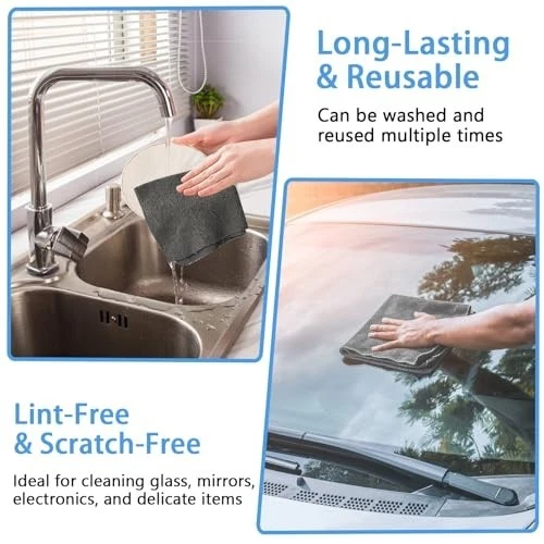 Versatile Microfiber Cleaning Cloth Roll - 75 Pack Tear-Away Design: Packaged in a roll, these cleaning cloths can be easily torn off as needed. With 75 pack of cleaning cloths per roll, you have an ample supply for daily use. Flawless Clean: Expect a lint-free and streak-free result every time. Perfect for cleaning spills, wiping surfaces, and dusting, leaving no residue or harm. Performs exceptionally on glass, dishes, and smooth surfaces. Premium Material: Composed of premium material, these shop rags are highly absorbent and effective at capturing dust and dirt. Reusable and Machine Washable: These microfiber cleaning cloth rolls are easy to clean and dry quickly. The microfiber towel rolls make your cleaning more efficient and reduce waste. Multi-Purpose: Each microfiber towel measures 10x10 inches Suitable for a variety of cleaning tasks Ideal for kitchens, cars, and workshops Perfect for cleaning electronics, glass, screens, and more A must-have for homes, bars, restaurants, bedrooms, kitchens, bathrooms, and garages