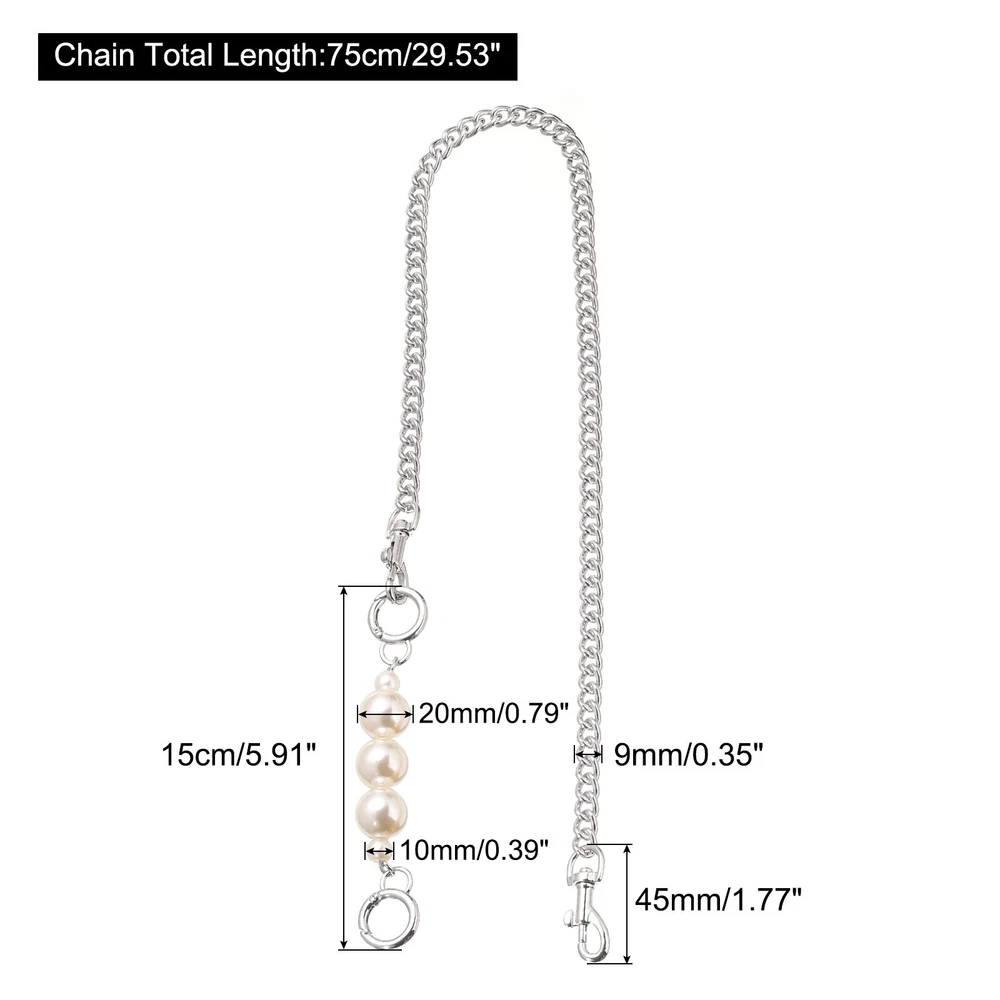 Document Description:Exquisite Workmanship - Sturdy and durable metal material, finish with plating for smooth and bright surface, corrosion resistance, not easy to fade and deform. An extra artificial pearl beads chain could be an ornament accessory which makes your bag more attractive and stylish.Easy to Use - Our purse strap comes with clasps on both ends and features easy-to-use that can be attached and detached from your purse quickly and easily, allowing you to switch between different bags effortlessly, so you can match your outfit.Adjustable Length - With bag chain extender attached to enhance the comfort of carrying a bag by providing options for adjusting the strap length flexibly. It can attach or detach to enable you to position the bag at your preferred height, reducing strain on shoulders, back and neck. The extender is particularly helpful for individuals with different body shapes.Wide Application - The replacement strap is versatile and matches various purse styles. It can be conveniently attached to most handbags, purses, crossbody bags, tote bags, clutches, shoulder bags, underarm bags, and more to raise the overall appearance of the bag that complement its style, color, or hardware.Specification:Material: Metal, ABSColor: Silver ToneChain Total Length: 75cm/29.53"Chain Width: 9mm/0.35"Pearl Strap Extender Length: 15cm/5.91"Pearl Diameter: 10mm/0.39", 20mm/0.79"Clasp Length: 45mm/1.77"Clasp Inner Diameter: 25mm/0.98"Package Content:1pcs x Purse Chain Strap1pcs x Purse Strap Extender 75cm/29.5" Pearl Purse Chain Strap Handbag Replacement Straps Extender, Silver Description: Exquisite Workmanship - Sturdy and durable metal material, finish with plating for smooth and bright surface, corrosion resistance, not easy to fade and deform. An extra artificial pearl beads chain could be an ornament accessory which makes your bag more attractive and stylish. Easy to Use - Our purse strap comes with clasps on both ends and features easy-to-use that can be attached and detached from your purse quickly and easily, allowing you to switch between different bags effortlessly, so you can match your outfit. Adjustable Length - With bag chain extender attached to enhance the comfort of carrying a bag by providing options for adjusting the strap length flexibly. It can attach or detach to enable you to position the bag at your preferred height, reducing strain on shoulders, back and neck. The extender is particularly helpful for individuals with different body shapes. Wide Application - The replacement strap is versatile and matches various purse styles. It can be conveniently attached to most handbags, purses, crossbody bags, tote bags, clutches, shoulder bags, underarm bags, and more to raise the overall appearance of the bag that complement its style, color, or hardware. Specification: Material: Metal, ABS Color: Silver Tone Chain Total Length: 75cm/29.53" Chain Width: 9mm/0.35" Pearl Strap Extender Length: 15cm/5.91" Pearl Diameter: 10mm/0.39", 20mm/0.79" Clasp Length: 45mm/1.77" Clasp Inner Diameter: 25mm/0.98" Package Content: 1pcs x Purse Chain Strap 1pcs x Purse Strap Extender Hot Item Payment 1.We accept eBay payment . 2.Payment must be received within 7 business days of auction closing. Shipping 1.We ship to your eBay or Paypal address. Please make sure your eBay and Paypal address is correct before you pay. 2.Items will be shipped within 1-3 business day when we received payment. 3.Delivery time depends on destination and other factors. Description Policy 75cm/29.5" Pearl Purse Chain Strap Handbag Replacement Straps Extender, Silver Description: Exquisite Workmanship - Sturdy and durable metal material, finish with plating for smooth and bright surface, corrosion resistance, not easy to fade and deform. An extra artificial pearl beads chain could be an ornament accessory which makes your bag more attractive and stylish. Easy to Use - Our purse strap comes with clasps on both ends and features easy-to-use that can be attached and detached from your purse quickly and easily, allowing you to switch between different bags effortlessly, so you can match your outfit. Adjustable Length - With bag chain extender attached to enhance the comfort of carrying a bag by providing options for adjusting the strap length flexibly. It can attach or detach to enable you to position the bag at your preferred height, reducing strain on shoulders, back and neck. The extender is particularly helpful for individuals with different body shapes. Wide Application - The replacement strap is versatile and matches various purse styles. It can be conveniently attached to most handbags, purses, crossbody bags, tote bags, clutches, shoulder bags, underarm bags, and more to raise the overall appearance of the bag that complement its style, color, or hardware. Specification: Material: Metal, ABS Color: Silver Tone Chain Total Length: 75cm/29.53" Chain Width: 9mm/0.35" Pearl Strap Extender Length: 15cm/5.91" Pearl Diameter: 10mm/0.39", 20mm/0.79" Clasp Length: 45mm/1.77" Clasp Inner Diameter: 25mm/0.98" Package Content: 1pcs x Purse Chain Strap 1pcs x Purse Strap Extender Hot Item Payment 1.We accept eBay payment . 2.Payment must be received within 7 business days of auction closing. Shipping 1.We ship to your eBay or Paypal address. Please make sure your eBay and Paypal address is correct before you pay. 2.Items will be shipped within 1-3 business day when we received payment. 3.Delivery time depends on destination and other factors.