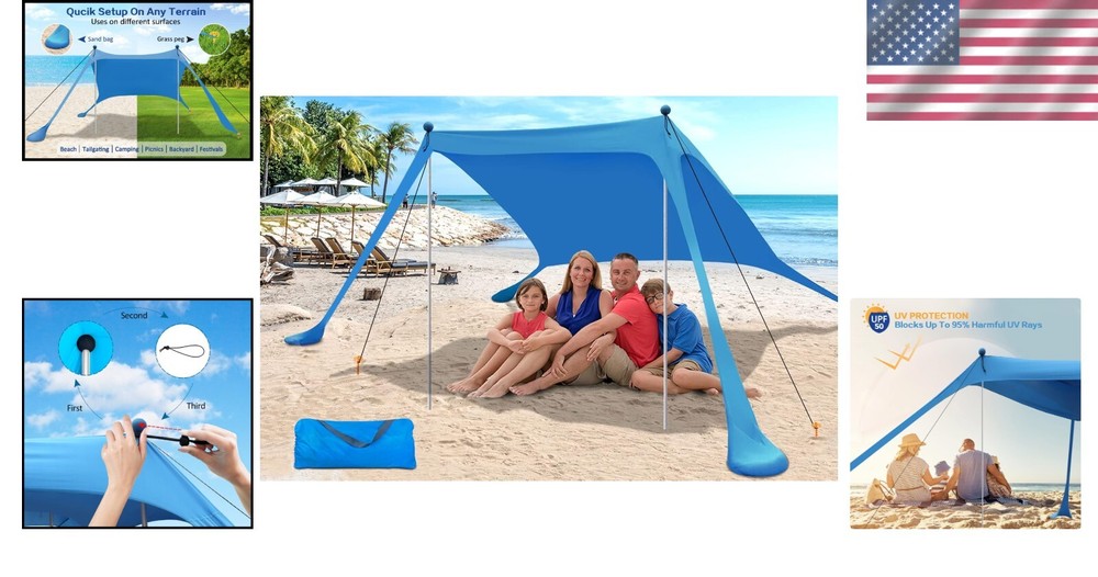 Portable Beach Canopy Tent 7.5x7.5FT with UV Protection & Wind Stability ‹ › ‹ › ‹ › ‹ › ‹ › ‹ › ‹ › ‹ › ‹ › Portable Beach Canopy Tent -Size: 7.5x7.5FT -UV Protection & Wind Stability Features: Available for 2-4 persons ensuring ample space for family and friends. 360-degree ventilation for a comfortable experience. Quick and easy assembly without tools required. Made from premium stretch lycra with a UV-blocking coating. Offers UPF 50+ protection, blocking harmful UV rays. Stable structure supported by two durable metal poles and four large sandbags. Includes windproof ropes for enhanced stability in windy conditions. Ultralight at only 6 pounds for easy transportation. Compact carry bag included for convenient storage. Benefits: Ultimate sun protection to prevent sunburn and reduce glare. Strong wind resistance ensuring your fun is not interrupted. Spacious interior allows you to relax and enjoy without feeling cramped. Versatile usage—ideal for beach outings, camping trips, backyard gatherings, or picnics. Easy to pack and carry, making it perfect for any outdoor activity. Why choose our Portable Beach Canopy Tent? Elevate your outdoor experiences with our Portable Beach Canopy Tent. This intricately designed tent not only provides extensive sun protection with its UPF 50+ fabric but also guarantees stability with its robust structure. It's perfect for gatherings at the beach, parks, or your backyard. With its spacious interior and lightweight design, you can easily carry it wherever you go. Protect yourself from the harsh rays and enjoy the comfort of a well-ventilated space. Don't miss out on the sun-soaked adventures—secure your Portable Beach Canopy Tent today for delightful outdoor entertainment! Shipping Free & Fast Shipping - We offer free shipping to most of the USA with a normal delivery time of 3-7 days. However, due to the current situation, additional delivery time (up to 3 weeks) may be required for some items. Alternative Carriers - We may use alternative carriers (e.g. USPS, FedEx, UPS, etc.) to ensure your package arrives safely and on time. Due to the use of multiple carriers, we are unable to provide a tracking number automatically. Handling Time - Orders are processed and shipped within 1-2 business days of receiving cleared payment. Shipping Restrictions - Shipping to Alaska, Hawaii, Puerto Rico, Guam, and other US territories may incur shipping charges or delivery restrictions. Please contact us before ordering, or your order can be refunded/cancelled. State Restrictions - There may be restrictions based on your state of purchase. For example, certain items may not be shipped to California due to state regulations. Contact for Tracking Updates - If you require tracking updates or have any concerns about the delivery of your order, please feel free to contact us, and we will be happy to assist you. Return 30-Day Hassle-Free Returns - We want you to be completely satisfied with your purchase. If you are not, you can return the item within 30 days of receiving it for a full refund or exchange. Easy Return Process - To start a return, simply contact us and we will provide you with a prepaid return shipping label and detailed instructions. Restocking Fee - There are no restocking fees for returns. However, the buyer is responsible for return shipping costs if the return is not due to a seller's error. Refund Processing Time - Refunds will be processed within 5 business days of receiving the returned item in its original condition. Payment We accept all major credit cards, PayPal, and Apple Pay for your convenience. Your payment information is secure and encrypted to ensure a safe and seamless transaction. Please complete your payment within 3 days of purchase to avoid any delays in shipping. Feedback Your feedback is extremely important to us. We strive to provide the best products and customer service possible. If you are satisfied with your purchase, please take a moment to leave us a positive review. If you have any concerns or issues with your order, please contact us before leaving negative feedback. We are committed to resolving any problems and ensuring your satisfaction. Contact Us If you have any questions or concerns, please feel free to reach out to our customer support team. You can contact us through the eBay messaging system. We are available Monday to Friday, 9:00 am to 5:00 pm EST, and we will do our best to respond to your inquiry within 24 hours. Buy it now and enjoy a pleasant shopping experience! UPC: Not Set Model: Not Set Window Dimensions: Not Set Unit Quantity: 6 lb Features: Portable,Sun Protection,Windproof,Stable Structure,Easy Set Up,360 Ventilated,Multi-Purpose Material: Metal,Sponge Brand: Unbranded Type: Beach Tent Capacity: 4 Person Number of Doors: 1 Number of Windows: 0 Number of Seasons: General Use Shape: Square Color: Blue MPN: Not Set Size: L Country/Region of Manufacture: Not Set Height: Not Set Width: Not Set Waterproof Rating: 1000-1500 mm Length: Not Set Weight: 6 lb Unit Type: lb